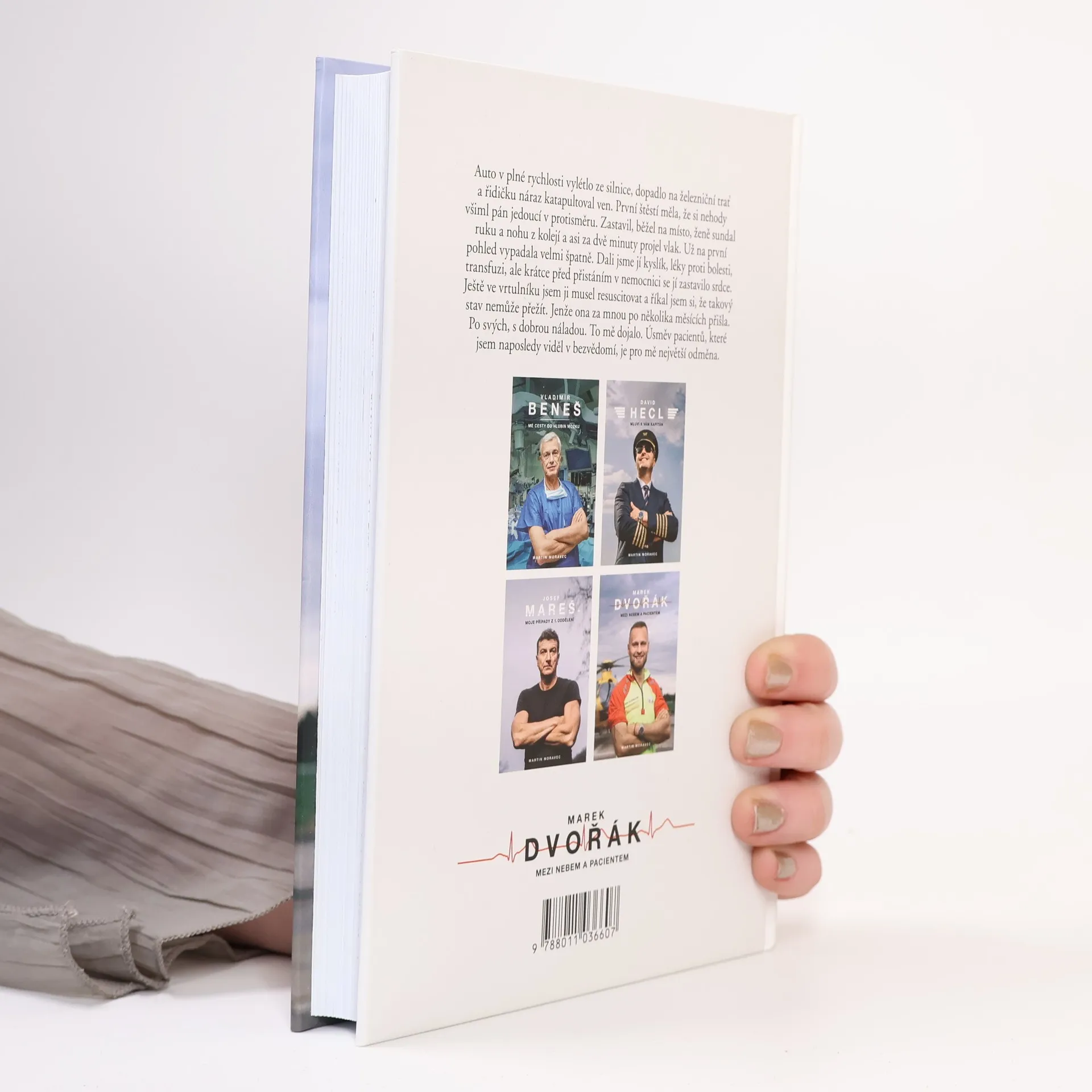 Při jeho práci jde o vteřiny. Během nich se musí rozhodnout, vytěsnit emoce a často si i sáhnout na dno. Lékař letecké záchranky Marek Dvořák takové situace zažívá denně a teď i vás vezme do světa, o kterém snil už jako malý kluk.Jak vypadá práce doktora ve vrtulníku? Na které vzlety nikdy nezapomene? Kdy měl při zásahu strach a co už by ve službě nechtěl zažít? Je to vyprávění, při kterém se občas tají dech. Chvílemi je dojemné a jindy vás naopak rozesměje. Taky vás naučí, že při první pomoci se není čeho bát, a možná i přiměje víc přemýšlet nad tím, co v životě děláte.Dvořák je mezi českými doktory svéráz. A to nejen kvůli mnoha tetováním, která má po těle. Pro kontroverzní názor nejde daleko, má osobitý smysl pro humor, ale zároveň je na každé jeho větě znát, jak moc medicínou žije. Když vypráví o pacientce, která ho po několika měsících od těžkého úrazu překvapila návštěvou a u které si myslel, že nemohla přežít, dojde i na slzy.