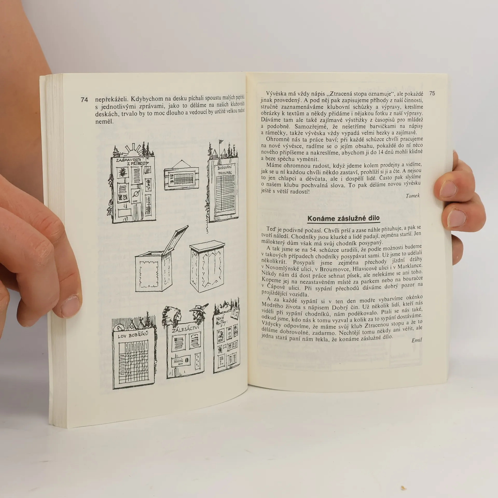 Zálesácká kniha plná návodů a rad je nepostradatelnou příručkou pro práci v klubech, družinách a oddílech. Jaroslav Foglar v ní dokázal, jakým byl vnímavým pozorovatelem přírody a zároveň znalcem chlapeckých duší. Příběh klubu Ztracená stopa, pojmenovaného podle přezdívky jednoho z jejích členů, se odehrává v měsíčních odstupech po jeden kalendářní rok, od září do srpna, a je psán formou kroniky. Chlapci z klubu prožijí nesčetná dobrodružství, naučí se morseovku, dozví se spoustu zajímavostí z přírody, hrají zajímavé hry, loví bobříky, apod. Prubířským kamenem jejich svornosti a houževnatosti se stane báječný prázdninový tábor, kterým vyvrcholila celá bohatá společná činnost klubu během roku. Samostatná kapitola Hry a hříčky do klubovny i na výpravy, jak je hráli chlapci ze Ztracené stopy, navazující na Kroniku, obsahuje 31 her a hříček, např. Máte rychlé ruce?, Řetěz slov, Turnaj důvtipu, Skákání přes provaz apod. 3.vydání.
