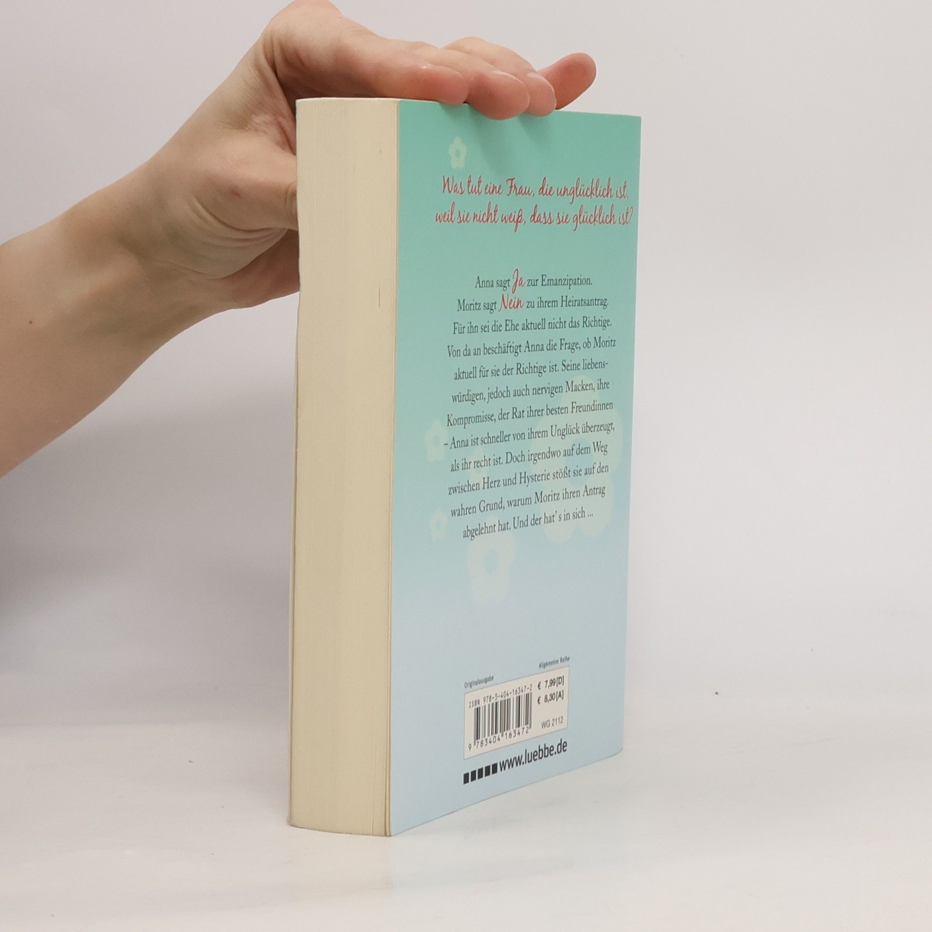 Anna sagt Ja zur Emanzipation. Moritz sagt Nein zu ihrem Heiratsantrag. Für ihn sei die Ehe aktuell nicht das Richtige. Von da an überlegt Anna, ob Moritz aktuell für sie der Richtige ist. Seine Macken, ihre Kompromisse - Anna ist prompt von ihrem Unglück überzeugt. Bis sie auf den Grund für Moritz' Nein stößt. Und der hat' s in sich ...