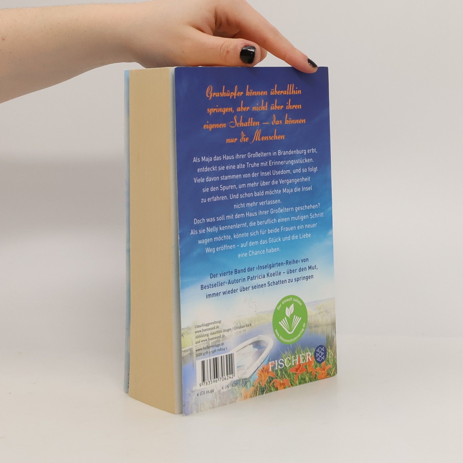 Grashüpfer können überallhin springen, aber nicht über ihren eigenen Schatten – das können nur die Menschen Als Maja das Haus ihrer Großeltern in Brandenburg erbt, entdeckt sie eine alte Truhe mit Erinnerungsstücken. Viele davon stammen von der Insel Usedom, und so folgt sie den Spuren, um mehr über die Vergangenheit zu erfahren. Und schon bald möchte Maja die Insel nicht mehr verlassen. Doch was soll mit dem Haus ihrer Großeltern geschehen? Als sie Nelly kennenlernt, die beruflich einen mutigen Schritt wagen möchte, könnte sich für beide Frauen ein neuer Weg eröffnen – auf dem das Glück und die Liebe eine Chance haben. Der vierte Band der ›Inselgärten-Reihe‹ von Bestseller-Autorin Patricia Koelle – über den Mut, immer wieder über seinen Schatten zu springen Dieses Buch ist ein in sich geschlossener Roman, den man eigenständig lesen kann.