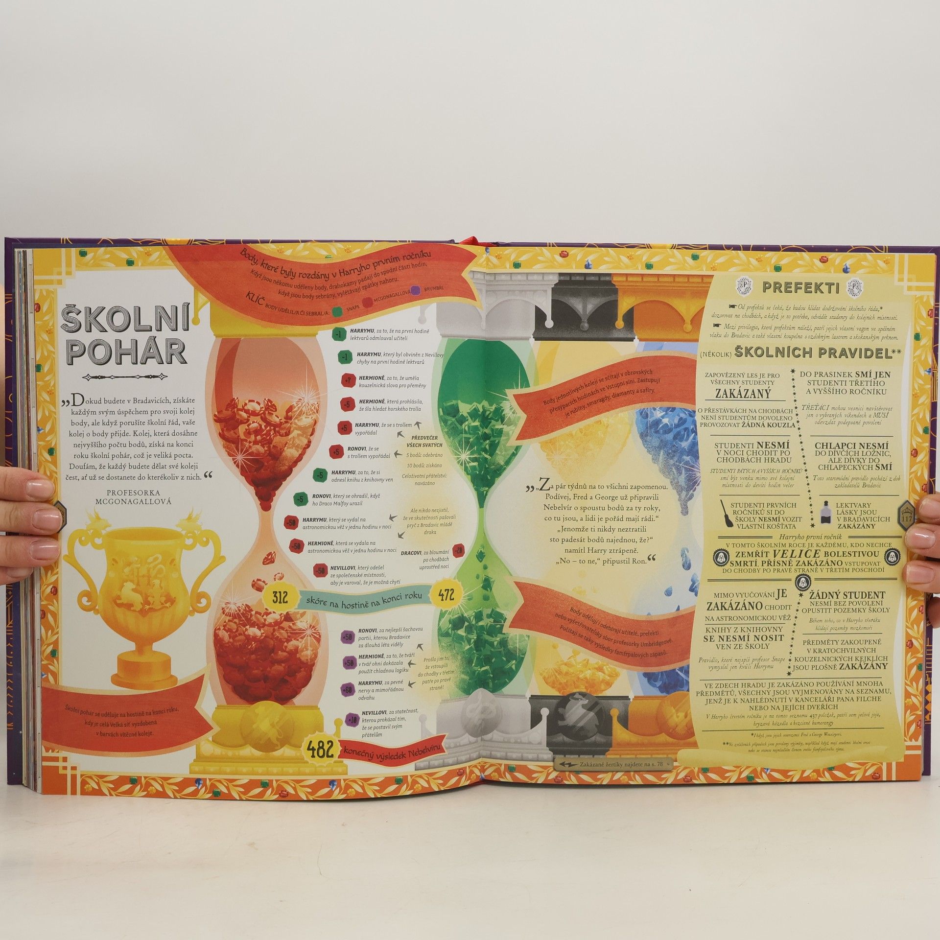Svět Harryho Pottera do nejmenších detailů v magicky ilustrovaném oficiálním průvodci. Accio encyklopedie! Mávněte hůlkou a přeneste se do pestrého kouzelnického světa v podání sedmi talentovaných ilustrátorů. Potkáte fantastická zvířata, přičichnete si k nejmocnějším lektvarům a přečtete si o kouzelnících i čarodějkách nejen z dob minulých. Navštívíte krámek Weasleyovic dvojčat v Příčné ulici, poznáte patrony různých postav a projdete si mapu Bradavic (všech 142 schodišť vám dá určitě zabrat). Uvnitř této knihy zkrátka najdete všechno – od akromantule až po Zlatonku.