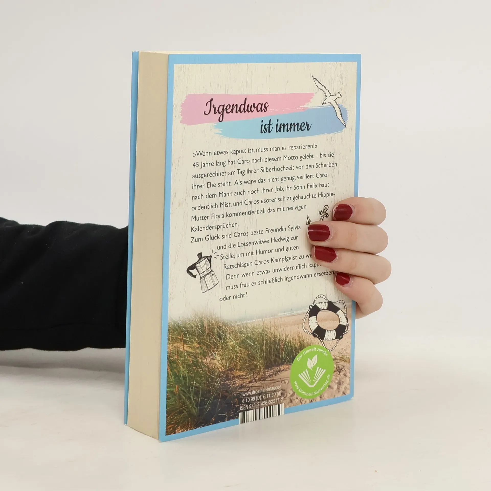 Mit Herz & Humor gegen die Widrigkeiten des Lebens: ein Wohlfühl-Roman von Spiegel-Bestsellerautorin Gabriella Engelmann. Caro Oldendorff hat 45 Jahre lang nach dem Motto gelebt: „Wenn etwas kaputt ist, muss man es reparieren!“ Doch an ihrem Silber-Hochzeitstag steht die Hamburgerin plötzlich vor den Scherben ihrer Ehe. Das Unglück nimmt kein Ende: Sie verliert ihren Mann, ihren Job, und ihr 15-jähriger Sohn Felix sorgt für Ärger. Zudem kommentiert ihre esoterisch angehauchte Hippie-Mutter die Situation mit nervigen Kalendersprüchen. Glücklicherweise stehen Caros beste Freundin Sylvia und die Lotsenwitwe Hedwig bereit, um mit Humor und guten Ratschlägen ihren Kampfgeist zu wecken. Denn wenn etwas unwiderruflich kaputt ist, muss man es schließlich irgendwann ersetzen, oder nicht? Engelmann verfasst warmherzige Wohlfühl-Romane über Frauen, die man sich als beste Freundinnen wünscht. In dieser Geschichte wird Humor großgeschrieben, denn das Leben ist viel zu kurz, um Trübsal zu blasen. Entdecken Sie die zauberhaften Roman-Welten von Gabriella Engelmann, darunter die „Büchernest“-Serie, die Föhr-Serie, die Villa-Serie sowie weitere Wohlfühl-Romane und Anthologien, die zum Schmunzeln und Träumen einladen.
