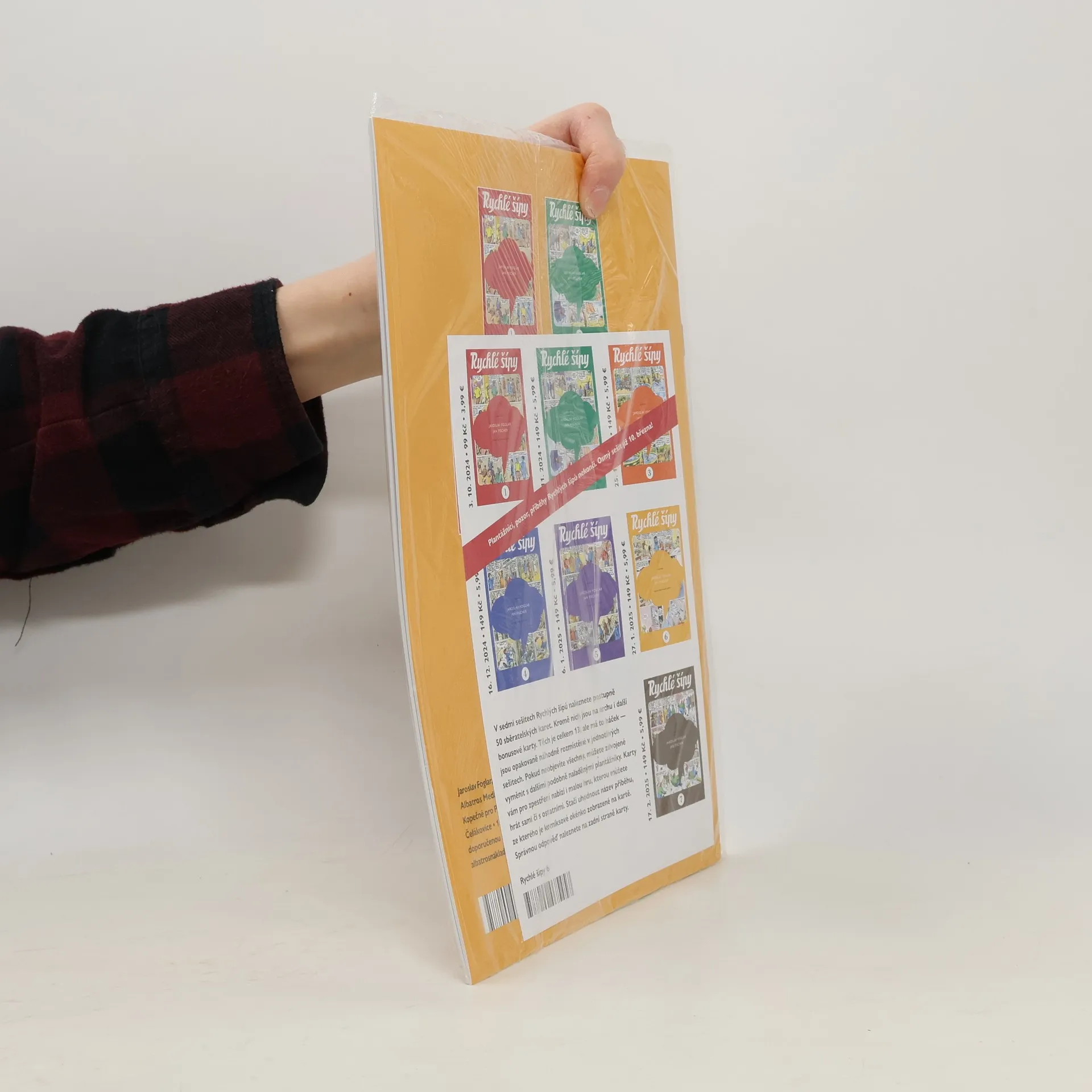 Pouze v trafikách. Kompletní sešity 1 - 7 vám budou doručeny až po vydání všech sedmi čísel, tj. v polovině března 2025. Od 3.10.2024 začnou postupně vycházet sešitová vydání Rychlých šípů Foglar-Fischer podle sedmi čísel vydaných PULS Ostrava v letech 1967-69. Nepůjdou koupit v knihkupectvích, ale pouze v prodejnách tisku. Součástí sešitů je navíc vždy sada sběratelských kartiček Rychlých šípů.