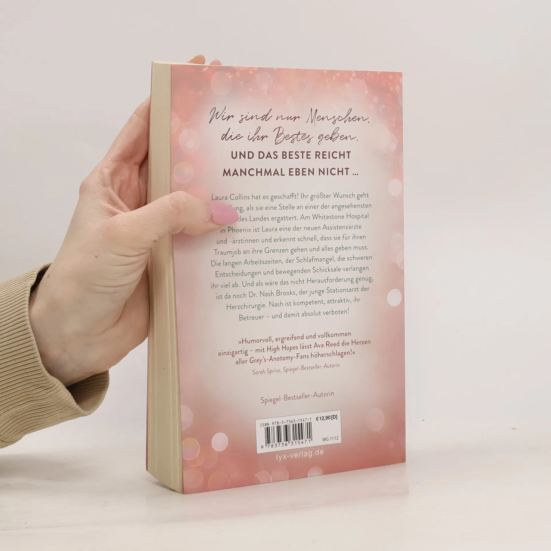Wir sind nur Menschen, die ihr Bestes geben. Und das Beste reicht manchmal eben nicht ... Laura Collins hat es geschafft! Ihr größter Wunsch geht in Erfüllung, als sie eine Stelle an einer der angesehensten Kliniken des Landes ergattert. Am Whitestone Hospital in Phoenix ist Laura eine der neuen Assistenzärzte und -ärztinnen und erkennt schnell, dass sie für ihren Traumjob an ihre Grenzen gehen und alles geben muss. Die langen Arbeitszeiten, der Schlafmangel, die schweren Entscheidungen und bewegenden Schicksale verlangen ihr viel ab. Und als wäre das nicht Herausforderung genug, ist da noch Dr. Nash Brooks, der junge Stationsarzt der Herzchirurgie. Nash ist kompetent, attraktiv, ihr Betreuer - und damit absolut verboten! „Humorvoll, ergreifend und vollkommen einzigartig - mit HIGH HOPES lässt Ava Reed die Herzen aller GREY‘S-ANATOMY-Fans höherschlagen!“ SARAH SPRINZ, SPIEGEL-Bestseller-Autorin Auftakt der vierbändigen Serie rund um die jungen Ärzt: innen des WHITESTONE HOSPITALS von SPIEGEL-Bestseller-Autorin Ava Reed