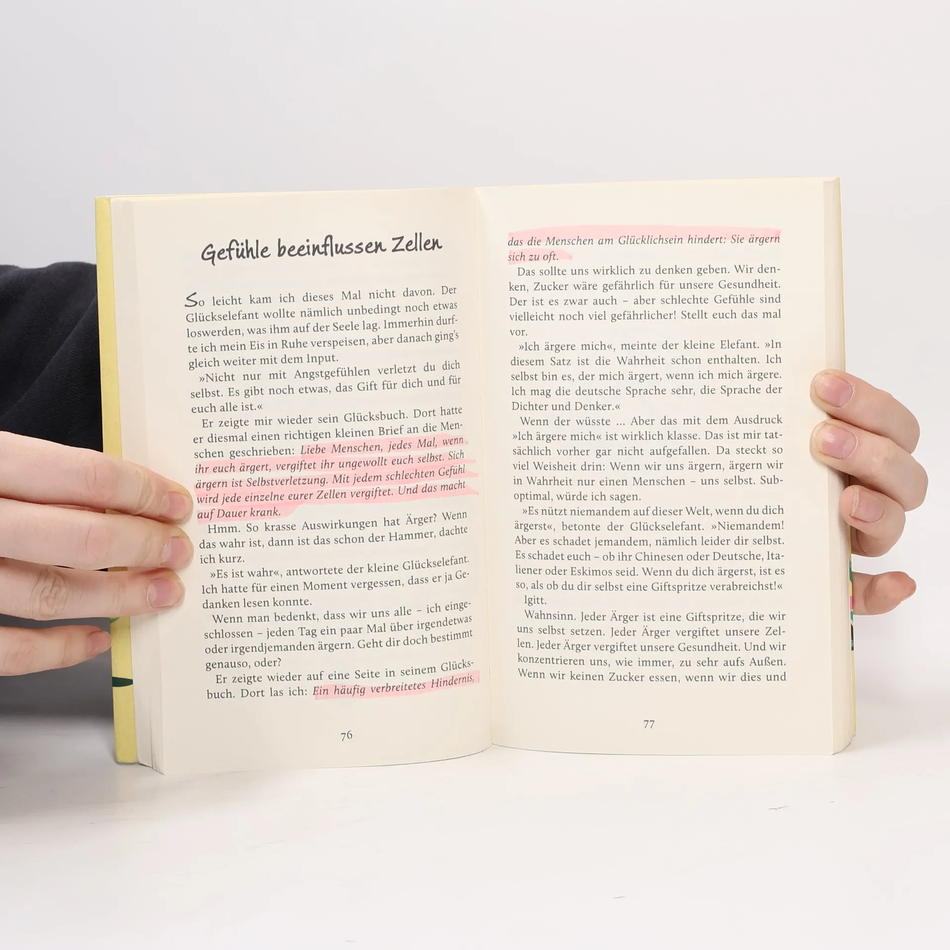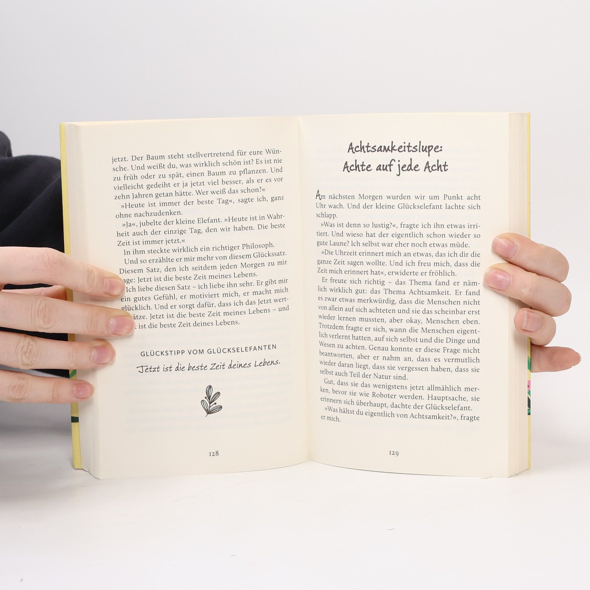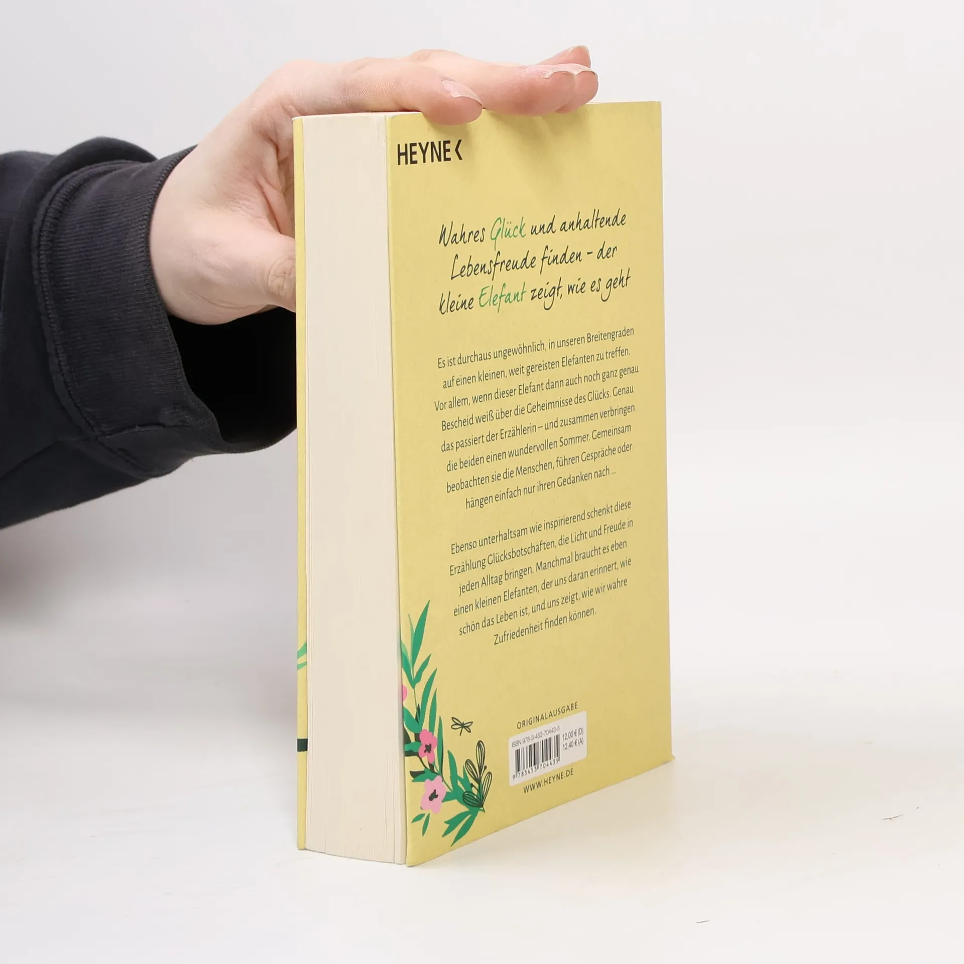 Es ist durchaus ungewöhnlich, in unseren Breitengraden auf einen kleinen, weit gereisten Elefanten zu treffen. Vor allem, wenn dieser Elefant dann auch noch ganz genau Bescheid weiß über die Geheimnisse des Glücks. Genau das passiert der Erzählerin – und zusammen verbringen die beiden einen wundervollen Sommer. Gemeinsam beobachten sie die Menschen, führen Gespräche oder hängen einfach nur ihren Gedanken nach … Diese ebenso unterhaltsame wie inspirierende Erzählung schenkt Glücksbotschaften, die Licht und Freude in jeden Alltag bringen. Manchmal braucht es eben einen kleinen Elefanten, der uns daran erinnert, wie schön das Leben ist, und uns zeigt, wie wir wahre Zufriedenheit finden können.