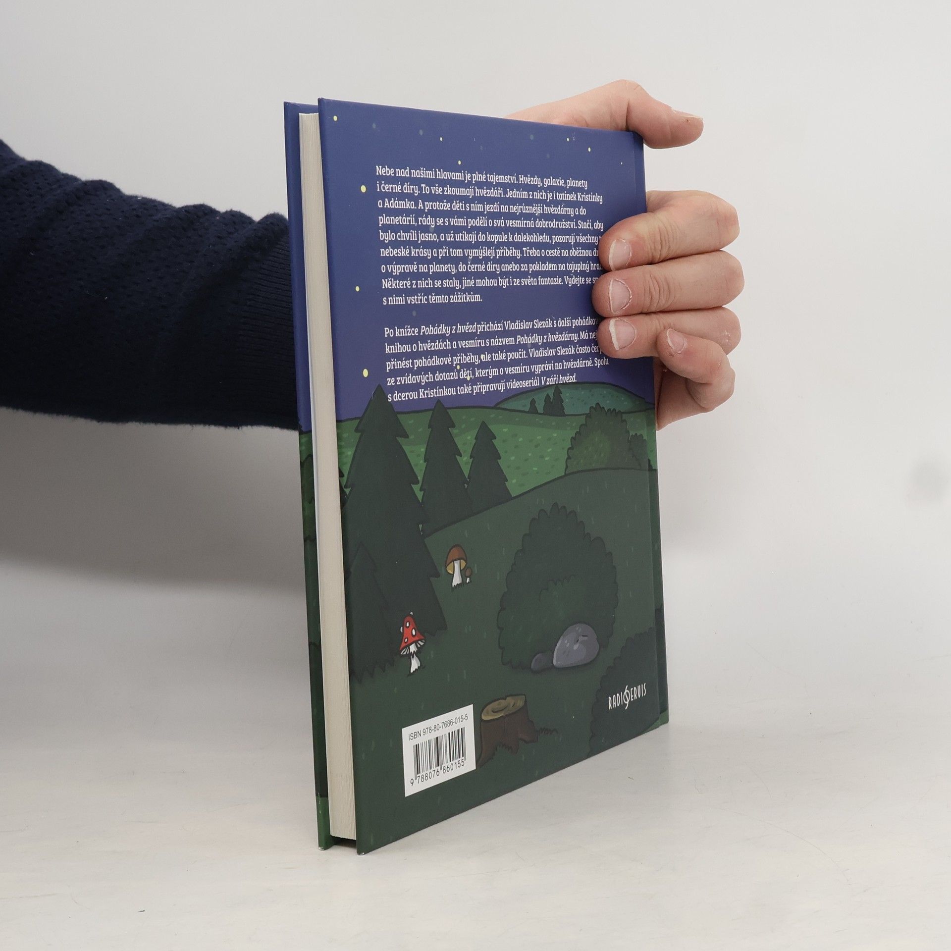 Nebe nad našimi hlavami je plné tajemství. Hvězdy, galaxie, planety i černé díry. To vše zkoumají hvězdáři. Jedním takovým je i tatínek Kristínky a Adámka. A protože děti s ním jezdí na nejrůznější hvězdárny a do planetárií, rády se s vámi podělí o svá vesmírná dobrodružství. Stačí, aby bylo chvíli jasno a už utíkají do kopule k dalekohledu, pozorují všechny ty nebeské krásy a přitom vymýšlejí příběhy. Třeba o cestě na oběžnou dráhu, výpravě na planety, do černé díry, anebo za pokladem na tajuplný hrad. Některé z nich se staly, jiné mohou být i ze světa fantazie. Vydejte se společně s nimi vstříc těmto zážitkům. Po knížce Pohádky z hvězd přichází Vladislav Slezák s další pohádkovou knihou o hvězdách a vesmíru s názvem Pohádky z hvězdárny. Má nejen přinést pohádkové příběhy, ale také poučit. Vladislav Slezák často čerpá ze zvídavých dotazů dětí, kterým o vesmíru vypráví na hvězdárně. Spolu s dcerou Kristínkou také připravují videoseriál V záři hvězd.
