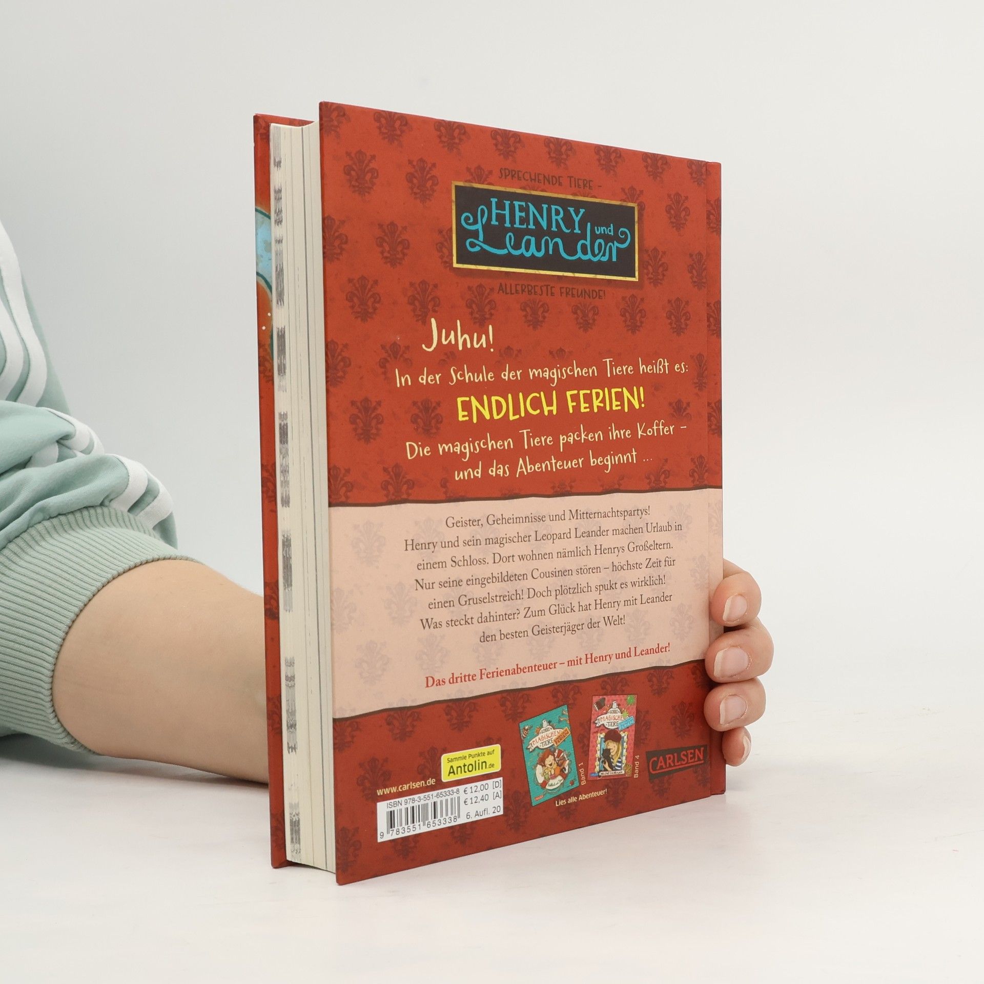 Jetzt kostenlos herunterladen – die App zur Serie! *** Auf in die Ferien – mit einem magischen, sprechenden Tier! *** BAND 3: Geister, Geheimnisse und Mitternachtspartys! Henry und sein magischer Leopard Leander machen Urlaub in einem echten Gespensterschloss. Dort wohnen nämlich Henrys Großeltern. Dumm nur, dass seine eingebildeten Cousinen auch da sind. Höchste Zeit für einen Gruselstreich! Doch plötzlich spukt es wirklich im Schloss. Zum Glück hat Henry mit seinem Leoparden Leander den besten Geisterjäger der Welt ... *** DIE SCHULE DER MAGISCHEN TIERE - Endlich Ferien: In der Schule der magischen Tiere heißt es: Endlich Ferien! Die magischen Tiere packen ihre Koffer – und das Abenteuer beginnt … Ein spannender Ferienkrimi in kurzen Kapiteln – mit echtem magischem Tier. *** Viel Spaß mit dem dritten Ferienabenteuer der Bestseller-Reihe! ***