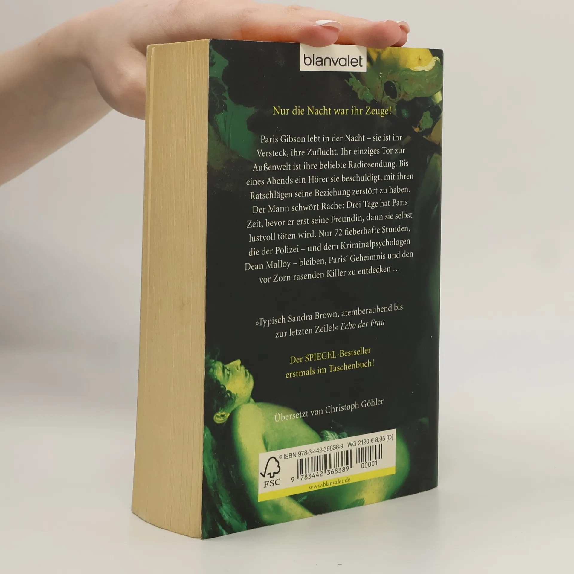 Nur die Nacht war ihr Zeuge! Ein Psychopath. Zwei unschuldige Opfer. Nur 72 Stunden zum Überleben. Paris Gibson lebt in der Nacht – sie ist ihr Versteck, ihre Zuflucht. Paris’ einziges Tor zur Außenwelt ist ihre beliebte Radiosendung. Bis eines Abends ein Hörer sie beschuldigt, mit ihren Ratschlägen seine Beziehung zerstört zu haben. Der Mann schwört Rache: Drei Tage hat Paris Zeit, bevor er erst seine Freundin, dann sie selbst lustvoll tötet. Nur 72 fieberhafte Stunden, die der Polizei – und dem Kriminalpsychologen Dean Malloy – bleiben, Paris’ Geheimnis und den vor Zorn rasenden Killer zu identifizieren …