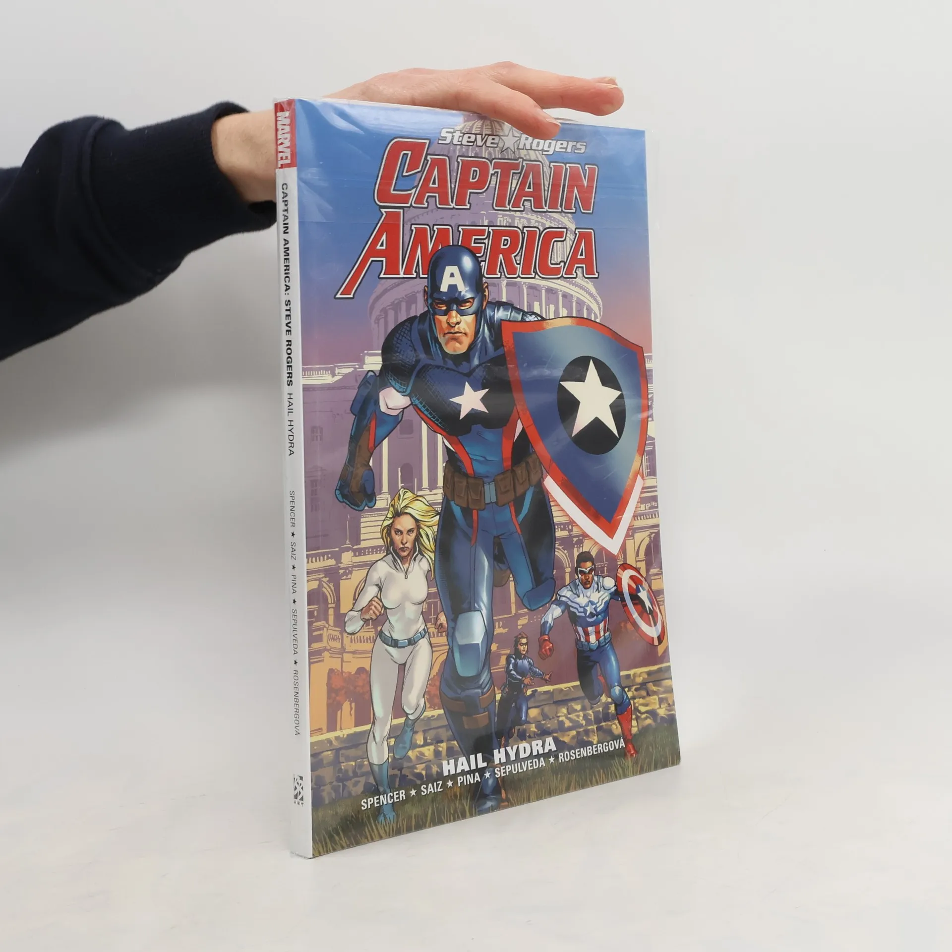Původní Strážce svobody je zpět! Steve Rogers byl znovuoživen s novým štítem, s novým týmem i novým posláním. A to právě včas. Bude ho třeba – proti všem zločineckým těžkým váhám uprchlým z Pleasant Hillu. Zpět je i jeho Nemesis, Red Skull. Hydra je nyní nebezpečnější a mocnější než kdy dřív. Ale zatímco Red Skull soupeří o ovládnutí ďábelské organizace s baronem Zemem, Steve pracuje na vlastních plánech – a nikdo mu nebude stát v cestě. Je tohle ten oddaný patriot, kterého znáte a milujete? Když Iron Man a Captain Marvel vženou svět Marvelu do druhé Občanské války, Steve zjišťuje, že je opět v centru celého konfliktu. Udrží Steve mír, když si vybere stranu? Nebo jen přilije olej do ohně? Obsahuje CAPTAIN AMERICA: STEVE ROGERS #1–6 a materiály z FREE COMIC BOOK DAY 2016 (CAPTAIN AMERICA) #1 – které vytvořili NICK SPENCER, JESÚS SAIZ, JAVIER PINA, MIGUEL SEPULVEDA a RACHELLE ROSENBERGOVÁ.