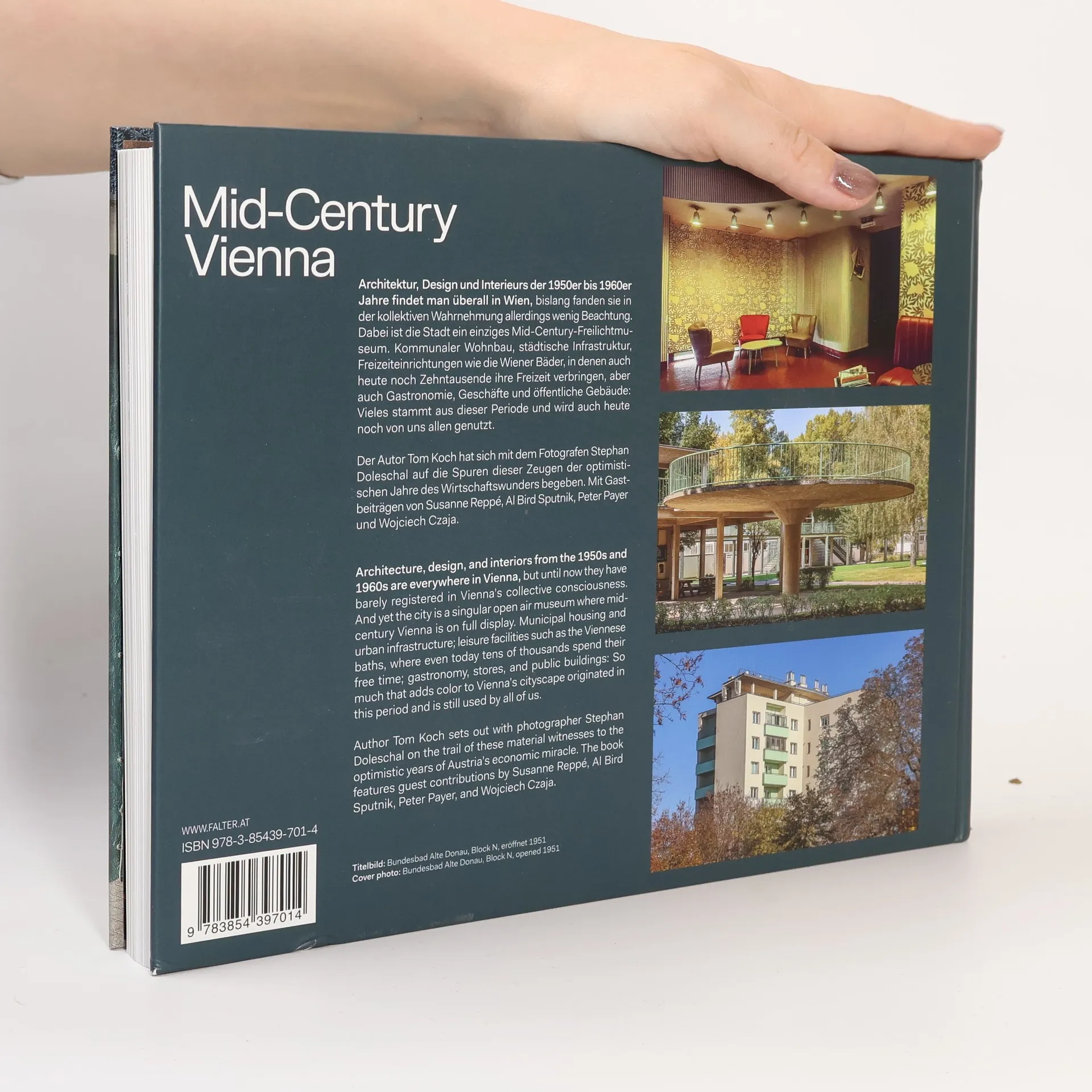 Die 1950er und 1960er Jahre, eine prägende Epoche für das Wiener Stadtbild, wurden bislang wenig beachtet. In dieser Zeit des Wirtschaftswunders hinterließen Architektur, Design und Interieurs nachhaltige Spuren. Die Publikation begibt sich auf die Suche nach Repräsentanten dieser Ära und versetzt die Leser in eine Zeit des Aufbruchs und Fortschritts. Über 500 Fotos präsentieren eindrucksvoll Orte, Bauwerke und Räume, die bis heute im Wiener Stadtleben präsent sind. Dazu gehören kommunaler Wohnbau, städtische Infrastruktur, Freizeitstätten wie die Wiener Bäder sowie Gastronomie, Geschäfte und öffentliche Gebäude. Fotograf Stephan Doleschal und Autor Tom Koch haben rund hundert Locations besucht und dokumentiert, darunter unentdeckte Orte wie eine verlassene Kommandozentrale eines Wasserreservoirs und einen aktiven Kernreaktor in Wien. Dank des Lockdowns konnten auch bekannte Orte in neuem Licht gezeigt werden, wie ein menschenleeres Café Prückl und das Gartenbaukino vor der Renovierung. Intime Einblicke in die Wohnsiedlungen Roland Rainers runden die Sammlung ab. Eine beeindruckende Kollektion, ergänzt durch Gastbeiträge von Susanne Reppé, Al Bird Sputnik, Peter Payer und Wojciech Czaja.