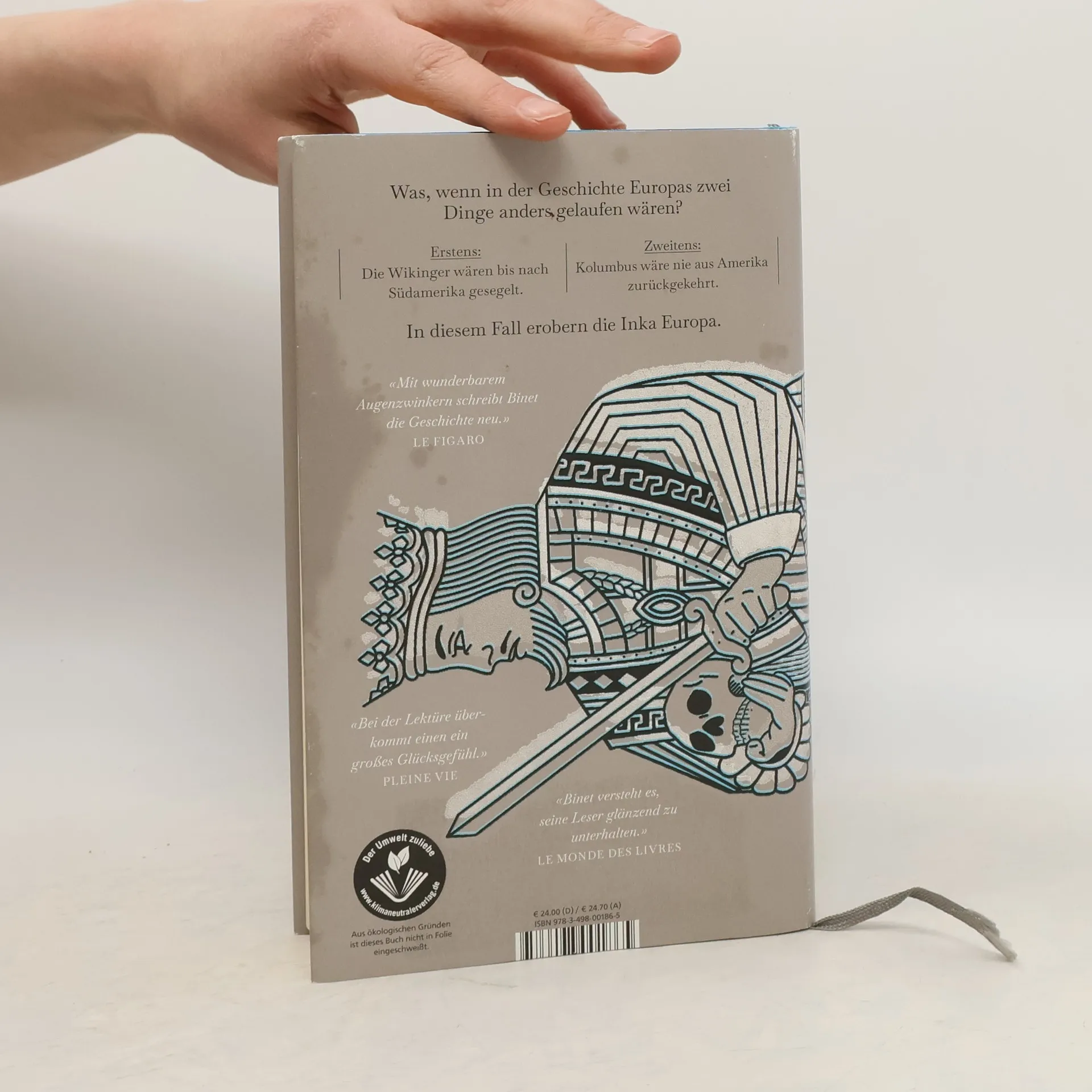 Was, wenn in der Geschichte Europas zwei Dinge anders gelaufen wären? Erstens: Die Wikinger wären mit Pferden und eisernen Waffen bis nach Südamerika gesegelt. Zweitens: Kolumbus wäre nie aus Amerika zurückgekehrt. In diesem Fall erobern die Inkas Europa. Sie landen im 16. Jahrhundert in Portugal, besiegen Karl V. in Frankreich und die Anhänger der Inquisition in Spanien. In Deutschland helfen ihnen die Fugger, das viele Gold zu verteilen. Im Herzen von Paris wird eine Pyramide errichtet, in Wittenberg schlägt man nach Luthers Tod die «95 Thesen der Sonne» an. Federschmuck ziert die Häupter der Europäer, auf den Feldern wächst Quinoa, Schafe sind heilig... Wie ginge es uns heute, fragt Binet, wären wir statt der kapitalistischen Ideologie den Lehren des Inkahäuptlings Atahualpa gefolgt? Eine mit sprühendem Witz geschriebene Alternativweltgeschichte, ein fulminantes Vexierspiel, ein brillanter Abenteuerroman. Laurent Binets Bücher sind internationale Bestseller, mit zahlreichen Preisen ausgezeichnet. Die «Eroberung» Europas durch die Inkas wird in zwanzig Sprachen übersetzt und als Serie verfilmt.
