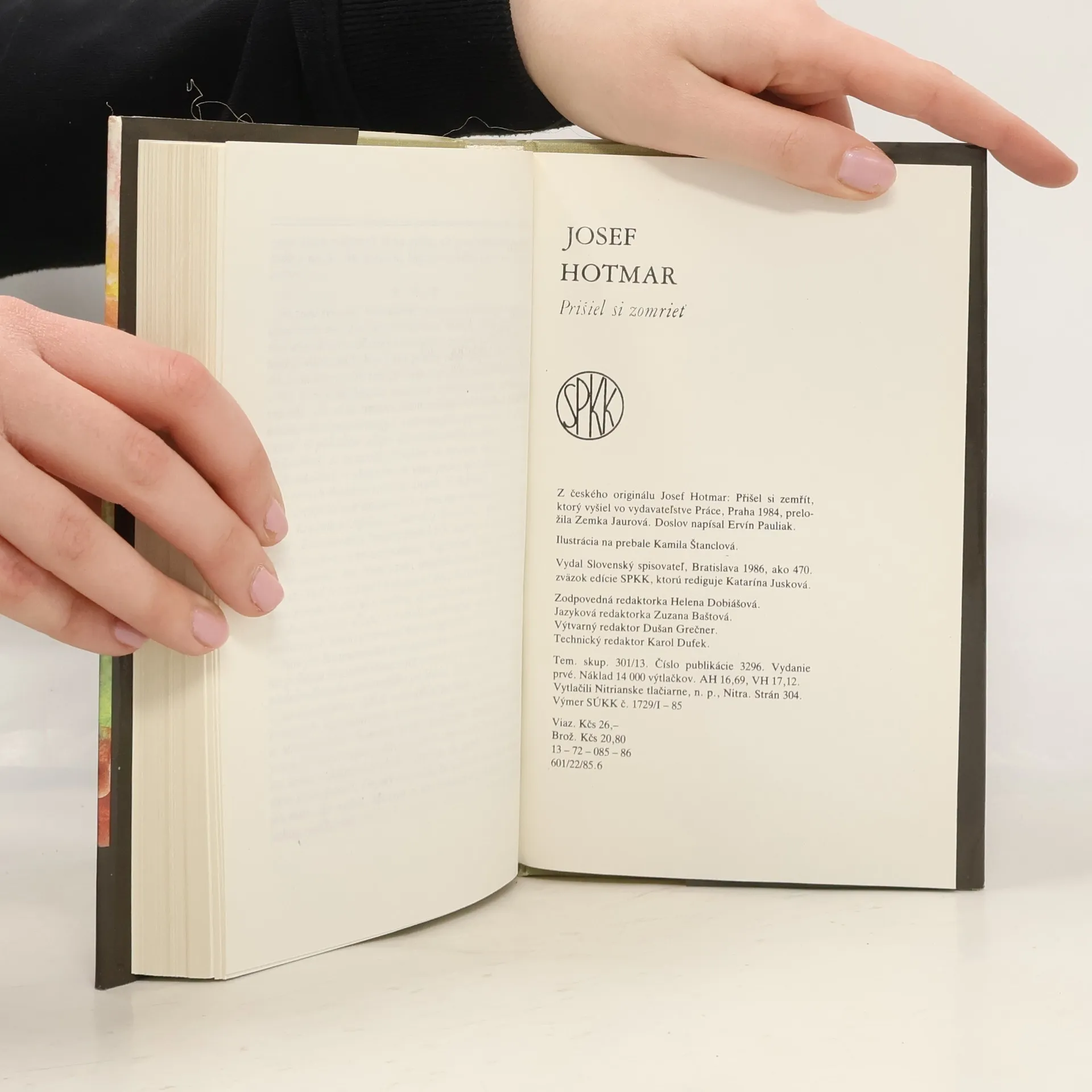 Román Prišiel si zomrieť, ktorý ponúkame nášmu čitateľovi v slovenskom preklade, je ôsmou knihou z pera Josefa Hotmara, známeho českého publicistu a novinára. Josef Hotmar (nar. 8. októbra 1933) strávil viacero rokov v západnej Európe ako zahraničný korešpondent Československého rozhlasu, navštívil Afriku aj Áziu, čo mu poskytlo celú sériu námetov na napísanie cestopisov - Západ mýtov zbavený, Európa zvaná západná, Afrika prvej generácie, Krížom cez kontinenty, ďalej reportážnych poviedok V tieni neónov, knihy Rozhovory nad Seinou (vydal Slov. spisovateľ 1980) a reportážneho románu Tamtamy dunia. Svoj posledný román situoval do viacerých prostredí - najprv do Paríža, potom na Korziku a do Čadu v Afrike. Dejová línia, ktorá spája tieto miesta, tvorí osudy syna profesora Golda, politického emigranta z r. 1968. Otec ho odvezie viac-menej proti jeho vôli do Francúzska, kde sa obaja v krátkom čase stávajú bezmocnými figúrkami v hre emigrantských kruhov a špionážnych centier.