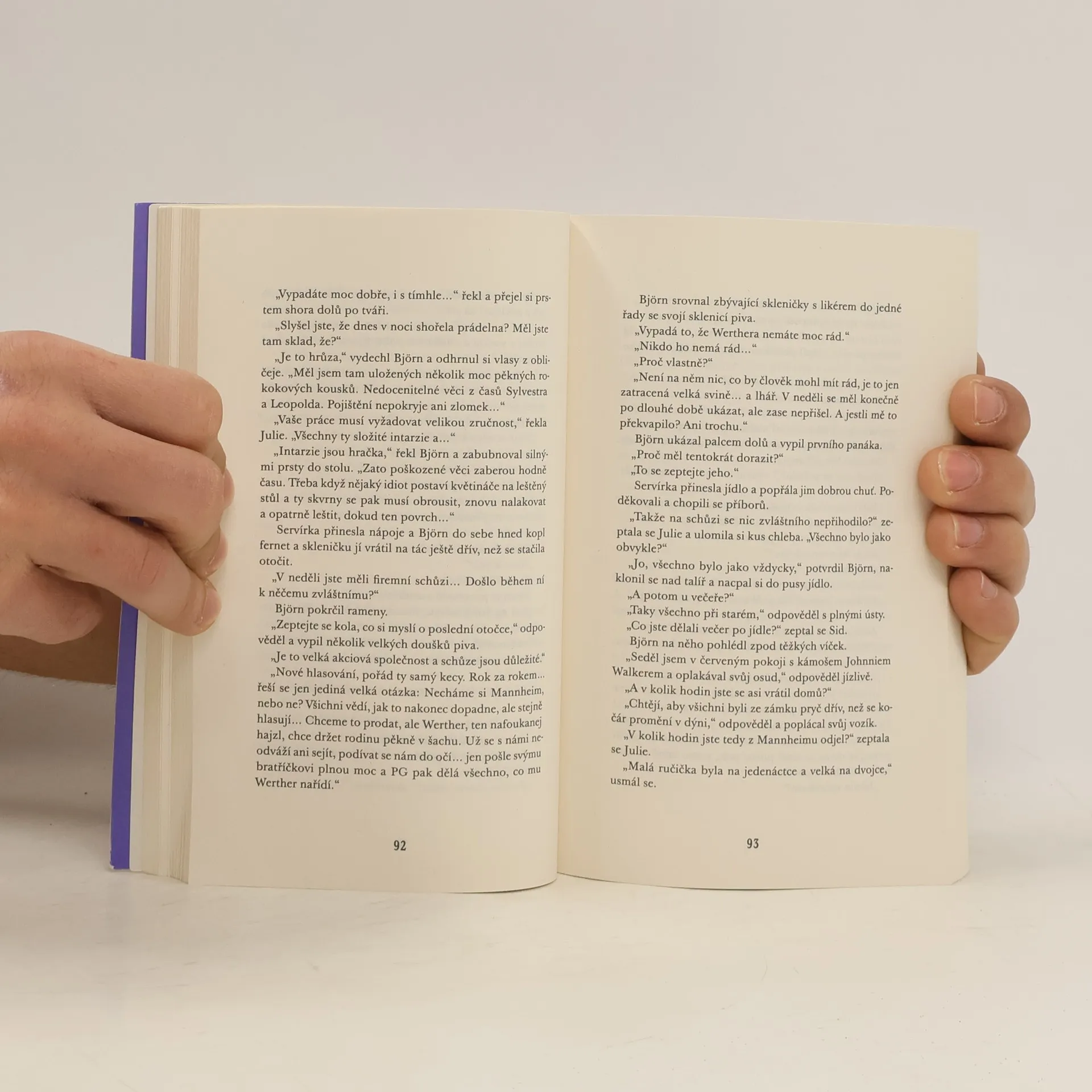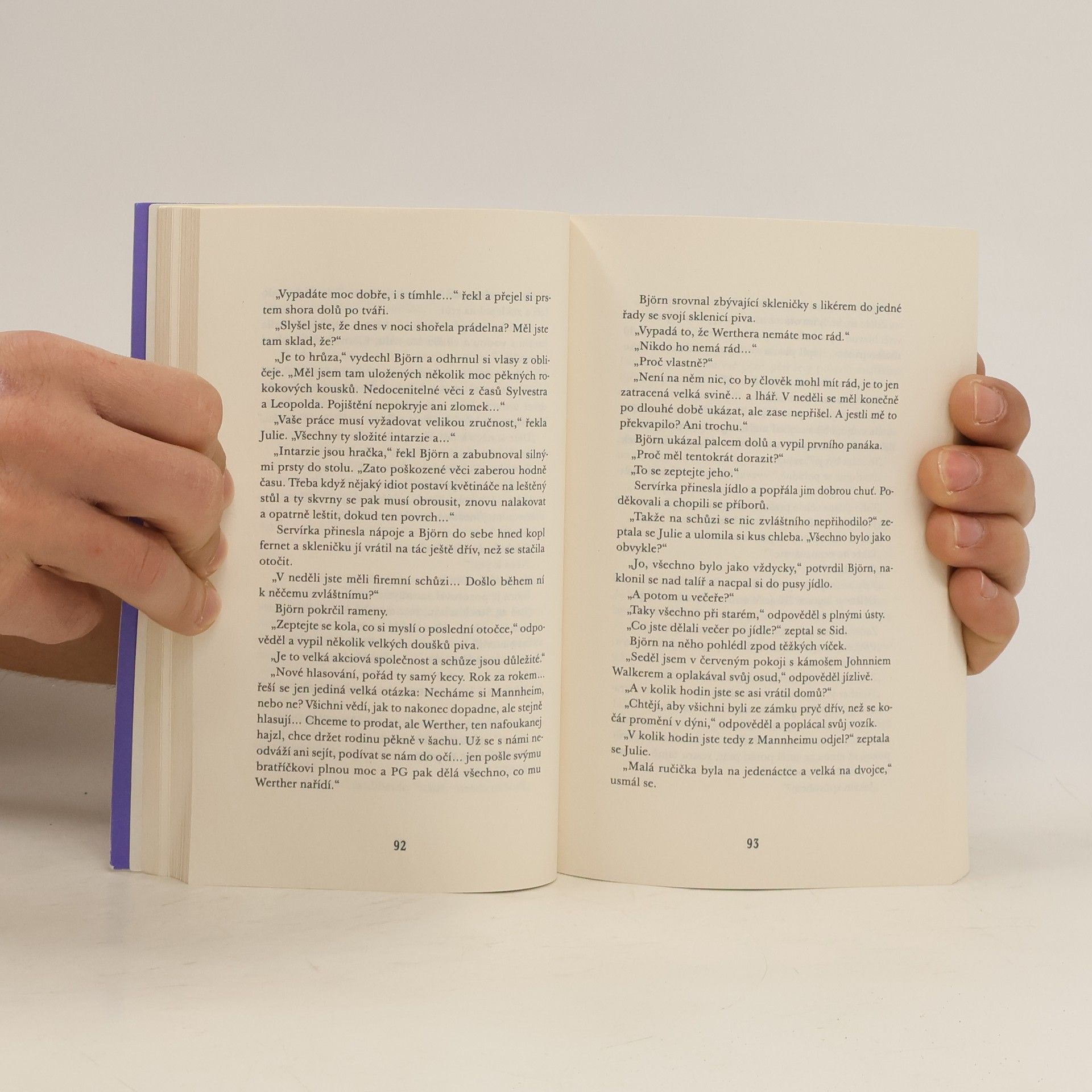 Úspěšná švédská autorská dvojice vstupuje do kriminálního žánru s novým pseudonymem a jiným typem detektivky. Honosné sídlo, lepší rodina plná tajemství a logické dedukce upomínají na detektivky klasické anglické školy. Soukromá vyšetřovatelka Julie Starková přijímá neohlášenou návštěvu. Per Günter Mott, který je jedním z majitelů rodinné firmy, se předchozího dne zúčastnil schůze správní rady a povečeřel na svém panství. Ráno pak v mobilu našel fotografii zkrvaveného svázaného muže s pytlem na hlavě. Kvůli výpadkům paměti způsobeným velkým množstvím alkoholu ale netuší, jak se snímek do telefonu dostal a kdo je na něm. Ze strachu o svoji pověst si chce Julii najmout, aby očistila jeho jméno, než se do případu vloží policie. Julie požádá svého bývalého manžela Sidneyho Mendelsona, který pracuje u městské policie, aby jí pomohl. Doufá, že by to mohla být šance získat ho zpět. Julie a Sidney se vydají do honosného sídla, kde se postupně seznamují se členy rodiny Pera Güntera. A jak se ukáže, každý z nich má své tajemství. Nakladatelská anotace. Kráceno.