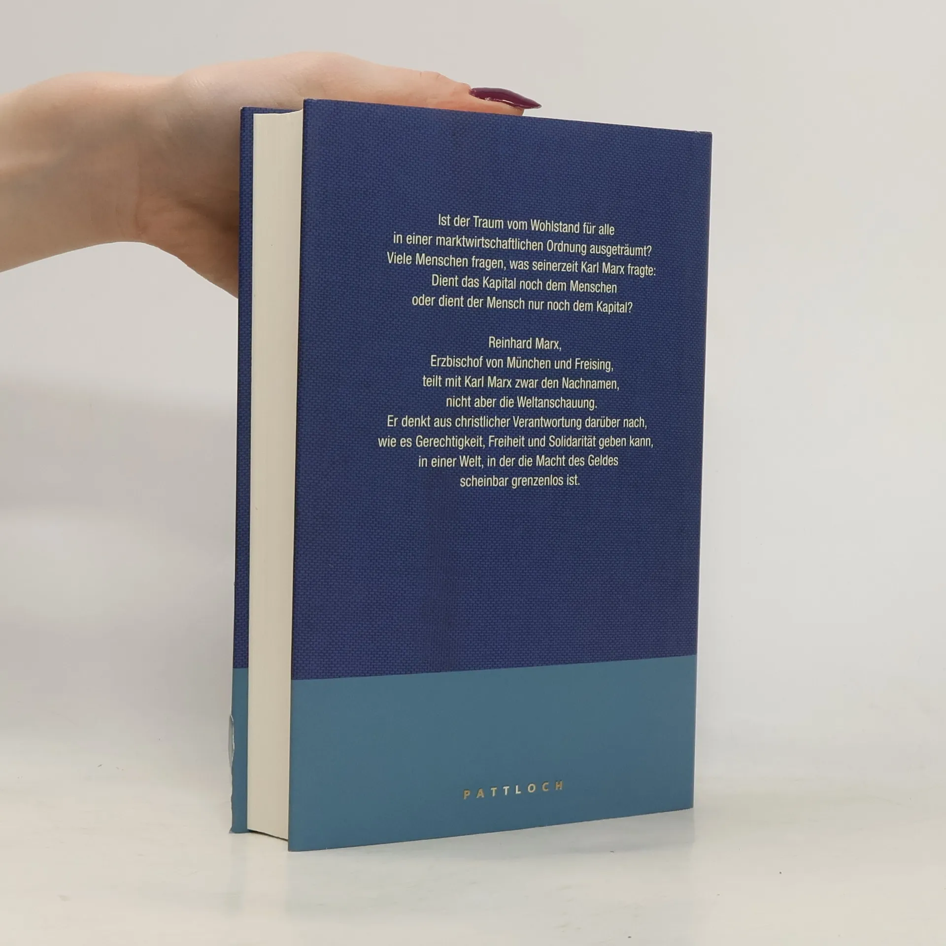 Ist der Traum vom Wohlstand für alle in einer marktwirtschaftlichen Ordnung ausgeträumt? Viele Menschen fragen, was seinerzeit Karl Marx fragte: Dient das Kapital noch dem Menschen oder dient der Mensch nur noch dem Kapital? Reinhard Marx, Erzbischof von München und Freising, teilt mit Karl Marx zwar den Nachnamen, nicht aber die Weltanschauung. Er denkt aus christlicher Verantwortung darüber nach, wie es Gerechtigkeit, Freiheit und Solidarität geben kann, in einer Welt, in der die Macht des Geldes scheinbar grenzenlos ist.
