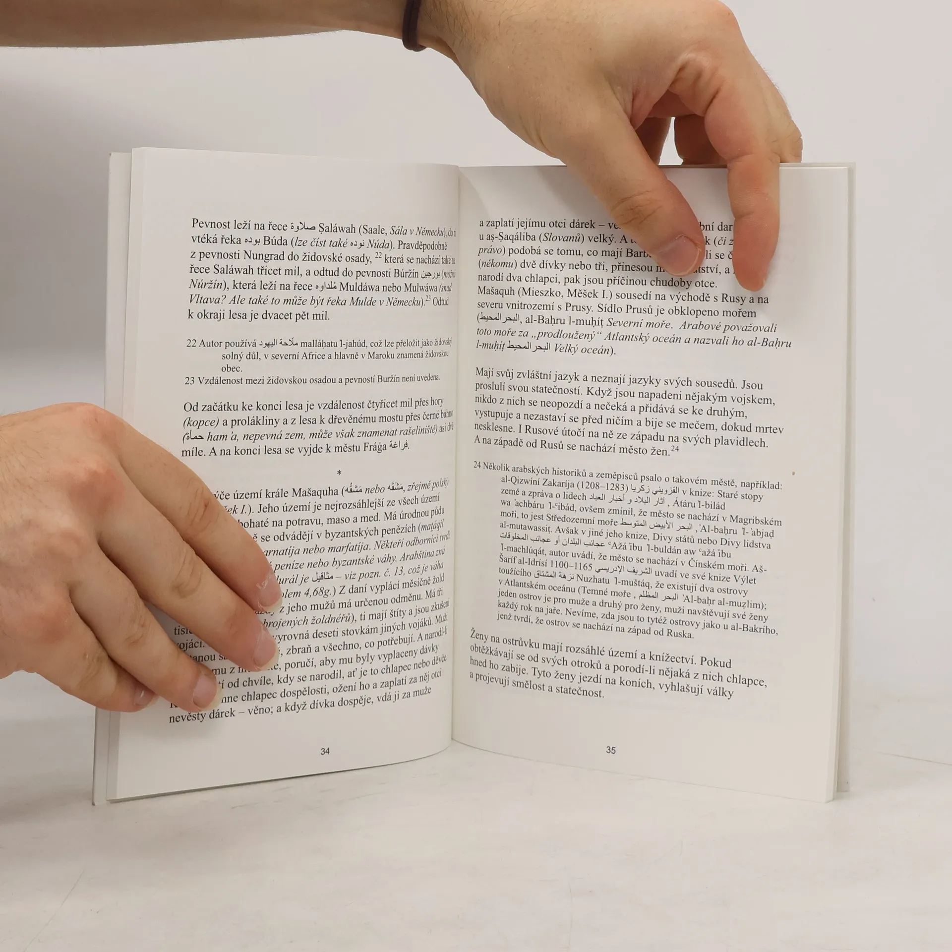 V úvodu knihy jsou představeni arabští autoři, zeměpisci a cestovatelé, z jejichž zpráv Abú al-Bakrí při sepisování svého rukopisu čerpal. Tito svědci byli prvními, kteří nám zanechali zprávy o Slovanech a způsobu života obyvatel prostoru nynějšího českého území. Al-Bakrí žil v první polovině jedenáctého století. Vycházel při psaní nejen ze svých vlastních zkušeností, ale i ze zpráv těchto svých předchůdců. Text jeho rukopisu vychází v plném arabském znění, v přepisu arabského textu do latinky a následně v českém překladu s komentářem. Tato významná kulturně-historická památka vyzdvihuje mimo jiné Prahu krásou nad jiná evropská města a popisuje život a zvyky obyvatel českého území před tisíci lety. V závěru knihy je stručný chronologický přehled panovníků a dynastií v Evropě a na Středním východě v uvedeném období. Originál rukopisu se nachází mezi rukopisy Núr cUtmáníja Walálahí v Turecku a v Národní knihovně v Paříži.