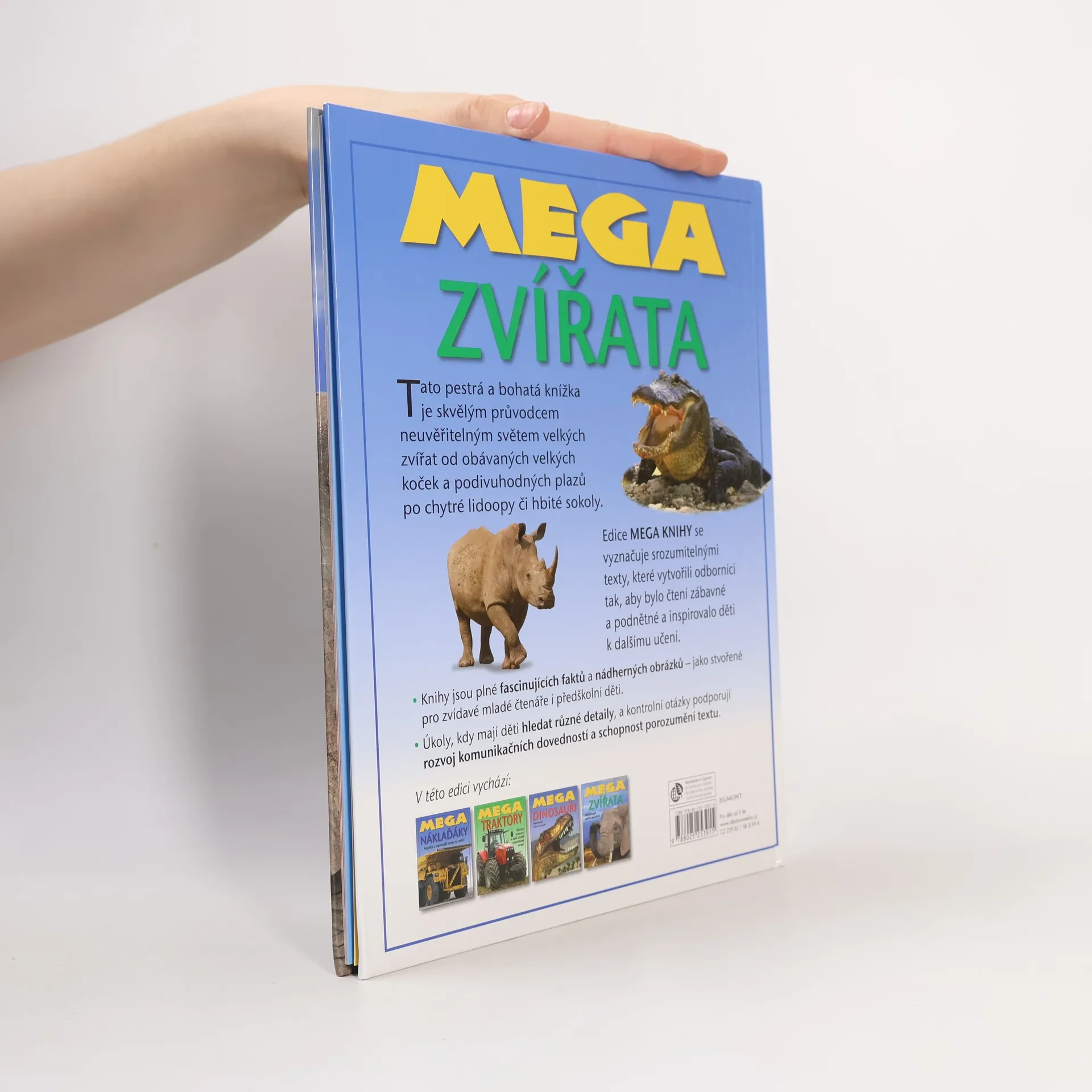 Tato pestrá a bohatá knížka je skvělým průvodcem neuvěřitelným světem velkých zvířat od obávaných velkých koček a podivuhodných plazů po chytré lidoopy či hbité sokoly. Edice MEGA KNIHY se vyznačuje srozumitelnými texty, které vytvořili odborníci tak, aby bylo čtení zábavné a podnětné a inspirovalo děti k dalšímu učení.