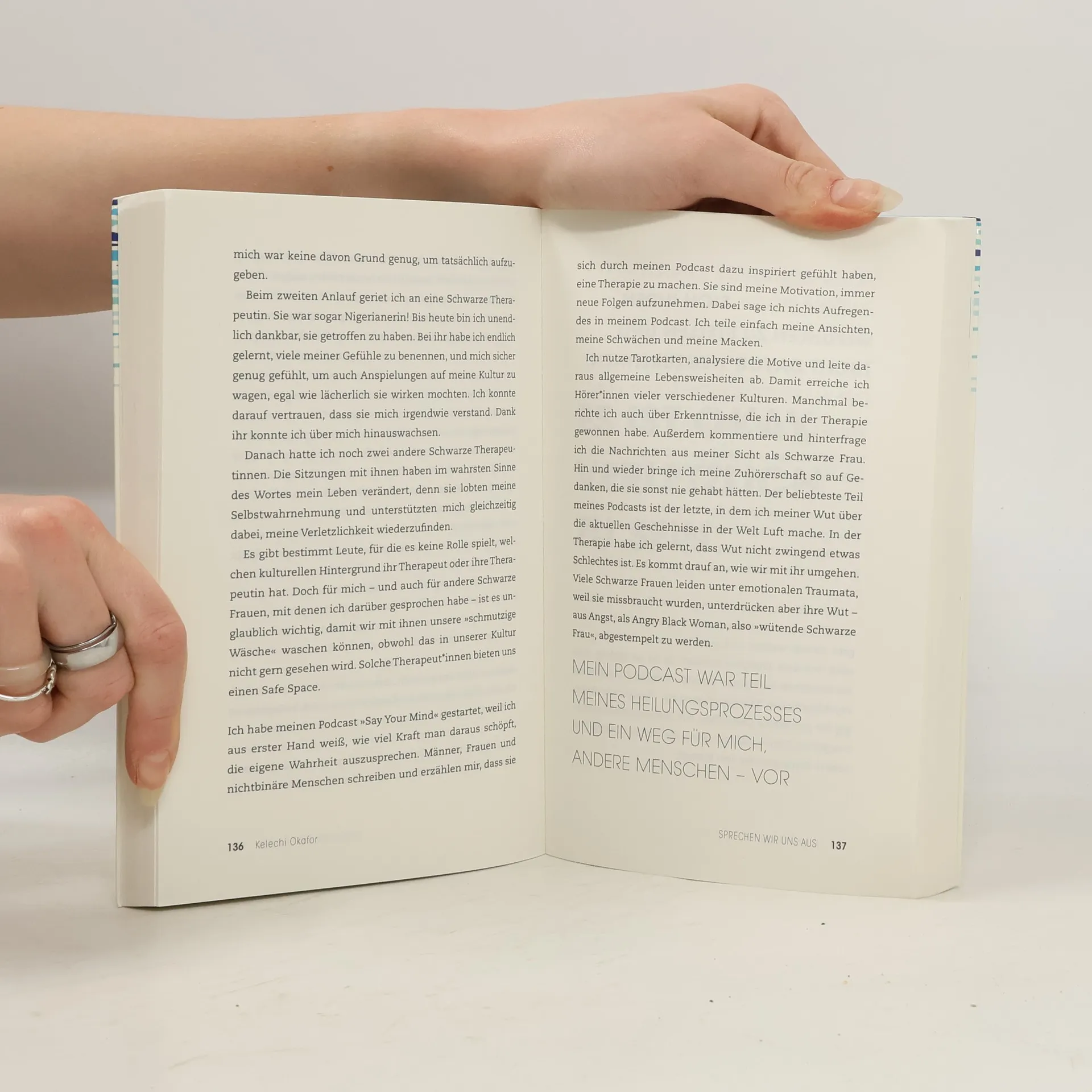 Ein Mutmacher für alle, denen es gerade nicht gut geht. Psychische Gesundheit geht uns alle an. Trotzdem trauen sich die wenigsten, offen darüber zu sprechen. Die britische Aktivistin Scarlett Curtis hat es sich zu ihrer Mission gemacht, dieses gesellschaftliche Tabu zu brechen, und gefragt: Was bedeutet psychische Gesundheit für dich? Mehr als 30 inspirierende Menschen teilen in dieser Anthologie ihre ganz persönliche Geschichte. Die Texte sind aufrüttelnd, lustig, schonungslos, poetisch und tröstend. Sie sind wie ein Zuruf, ein lautes Signal, das alle da draußen wissen lässt: Du bist nicht allein! Egal, was du gerade durchmachst – es ist okay. Es ist okay, nicht okay zu sein. Es ist okay, zu weinen. Es ist okay, wütend zu sein. Es ist okay, um Hilfe zu bitten. Es ist okay, im Bett zu bleiben. Es ist okay, wenn du nicht darüber reden willst. Es ist okay, eine Therapie zu machen. Es ist okay, Medikamente zu nehmen. Es ist okay, menschlich zu sein. Das hier ist kein Lehrbuch. Es wurde nicht ausschließlich von professionellen Psycholog*innen oder Psychiater*innen geschrieben. Es ist persönlich. Aber in Teilen von persönlichen Geschichten liegt eine gewaltige Kraft. »Das ist so ein großartiges Buch. Egal, wie du dich fühlst, es wird dir helfen.« Ed Sheeran Mit Beiträgen von Emma Thompson • Emilia Clarke • Hannah Witton • James Blake • Lena Dunham • Matt Haig • Naomi Campbell uvm. (gekürzte Ausgabe) Außerdem exklusiv in der deutschen Ausgabe: Texte von Angelina Boerger • Benjamin Maack • Coldmirror (Kathrin Fricke) • Lucia Lucia • Marlon Schulte • Miriam Davoudvandi • Nicholas Müller • Pia Kabitzsch Triggerwarnung: Depression, Suizidgedanken, Angststörung