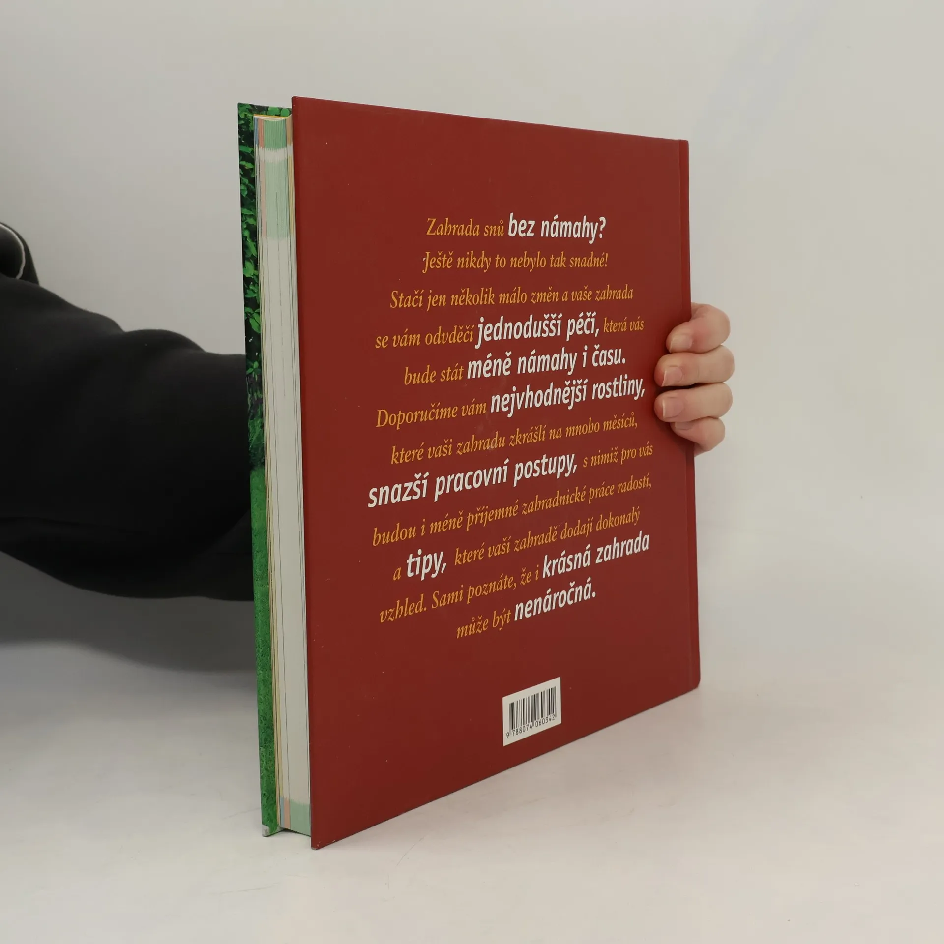 Více než 500 vyzkoušených rad, technik a návodů pro usnadnění zahradnických činností v jedinečné knize. Krásná nenáročná zahrada je praktický průvodce, který vám ukáže, jak mít zahradu hezčí, ale nikoli náročnější. Začněte ještě dnes! S tímto skvělým rádcem při ruce můžete začít se stovkami projektů, nápadů a technik sázení rostlin a dosáhnete úžasných výsledků. Už během několika týdnů budete mít úhlednou terasu bez plevele a čisté květinové záhonky bez bolesti zad. Už za pár měsíců budete mít radost z dokonale sestřihaného trávníku bez mechu, nad nímž jste nemuseli strávit celé víkendy. Za rok bude vaše zahrada vypadat jako nikdy, s jásavými, krásnými a zdravými rostlinami, stromy a keři, aniž byste se na ní museli namáhat celé nekonečné dny.
