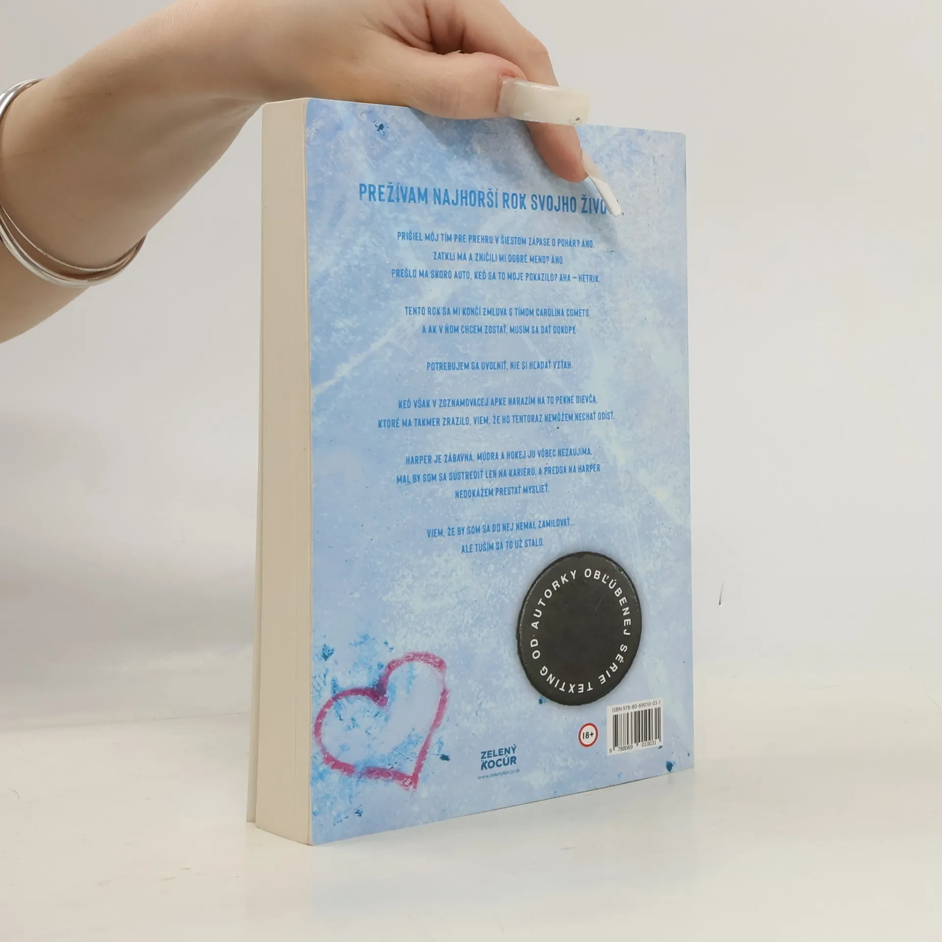 Prežívam najhorší rok svojho života.Prišiel môj tím pre prehru v šiestom zápase o pohár? Áno.Zatkli ma a zničili mi dobré meno? Áno.Prešlo ma skoro auto, keď sa to moje pokazilo? Aha – hetrik.Tento rok sa mi končí zmluva s tímom Carolina Comets, a ak v ňom chcem zostať, musím sa dať dokopy.Potrebujem sa uvoľniť, nie si hľadať vzťah.Keď však v zoznamovacej apke narazím na to pekné dievča, ktoré ma takmer zrazilo, viem, že ho tentoraz nemôžem nechať odísť.Harper je zábavná, múdra a hokej ju vôbec nezaujíma.Mal by som sa sústrediť len na kariéru, a predsa na Harper nedokážem prestať myslieť.Viem, že by som sa do nej nemal zamilovať... ale tuším sa to už stalo.