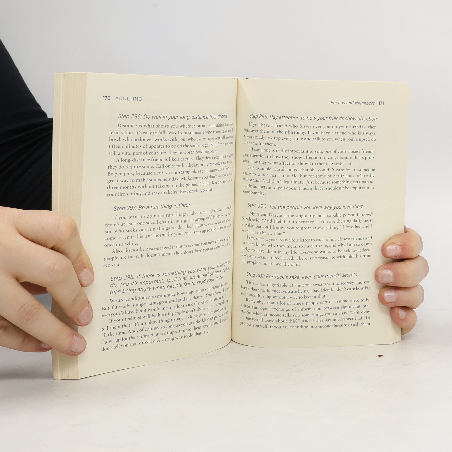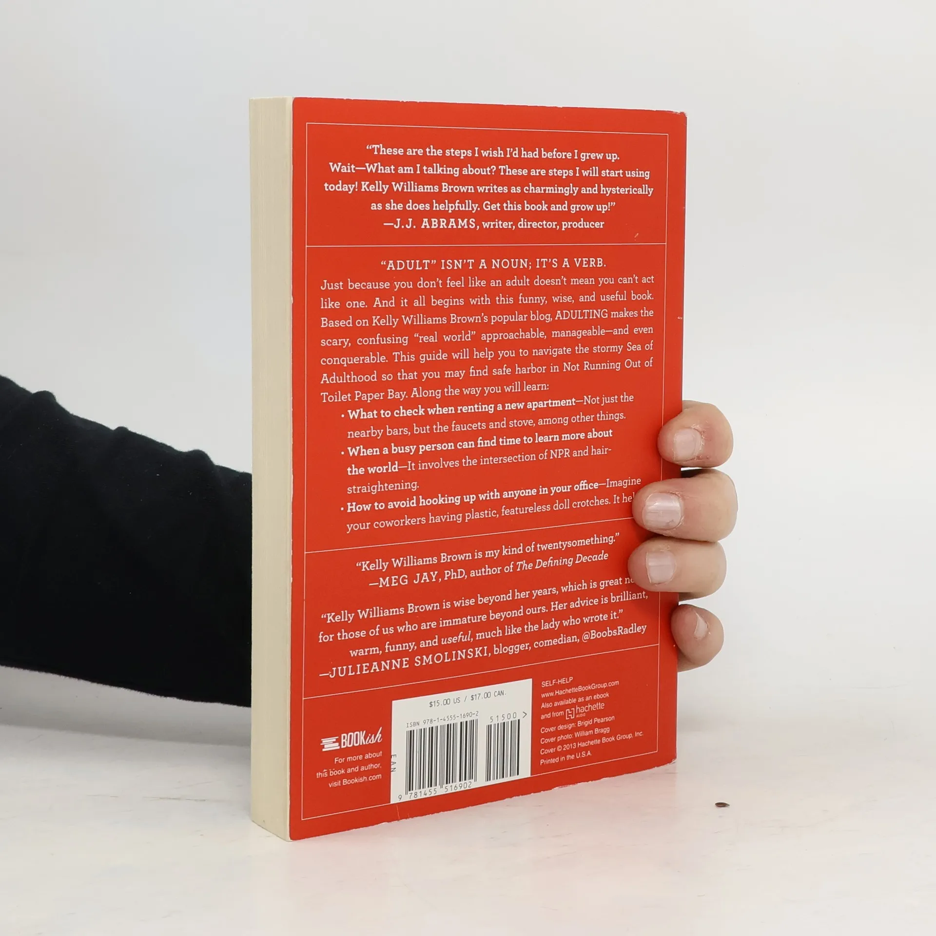 "Adult" isn't a noun; it's a verb. Just because you don't feel like an adult doesn't mean you can't act like one. And it all begins with this funny, wise, and useful book. Based on Kelly Williams Brown's popular blog, ADULTING makes the scary, confusing "real world" approachable, manageable - and even conquerable. This guide will help you navigate the stormy Sea of Adulthood so that you may find safe harbor in Not Running Out of Toilet Paper Bay. Along the way you will learn: What to check when renting a new apartment - Not just the nearby bars, but the faucets and stove, among other things. When a busy person can find time to learn more about the world - It involves the intersection of NPR and hair-straightening. How to avoid hooking up with anyone in your office - Imagine your coworkers having plastic, featureless doll crotches. It helps. -- from back cover