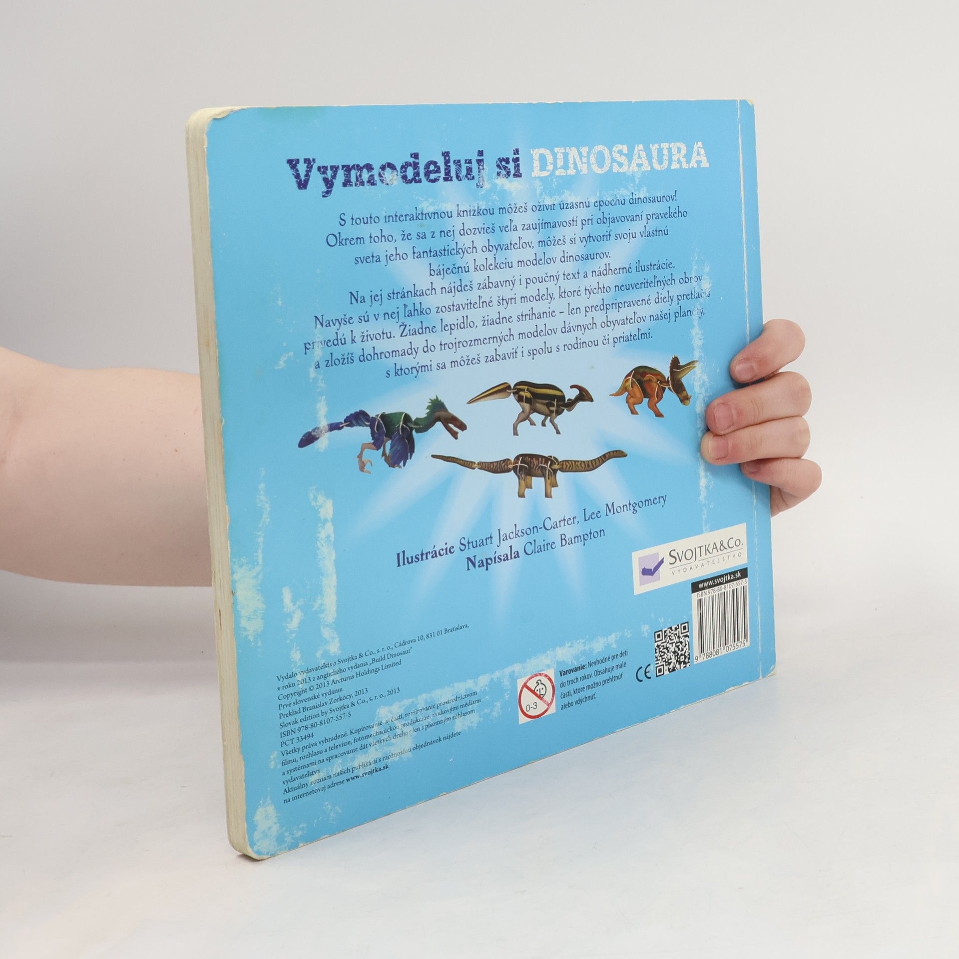 Interaktívna knižka-leporelo s ktorou si môžu deti oživiť úžasnú epochu dinosaurov! Okrem toho, že sa z nej dozvedia veľa zaujímavostí pri objavovaní pravekého sveta a jeho fantastických obyvateľov, môžu si vytvoriť svoju vlastnú báječnú kolekciu modelov dinosaurov. Nájdu tu zábavný i poučný text a nádherné ilustrácie. Navyše sú v nej ľahko zostaviteľné štyri modely, ktoré týchto neuveriteľných obrov privedú k životu. Žiadne lepidlo, žiadne strihanie - len predpripravené diely pretlačia a zložia dohromady do trojrozmerných modelov dávnych obyvateľov našej planéty, s ktorými sa môžu zabaviť.