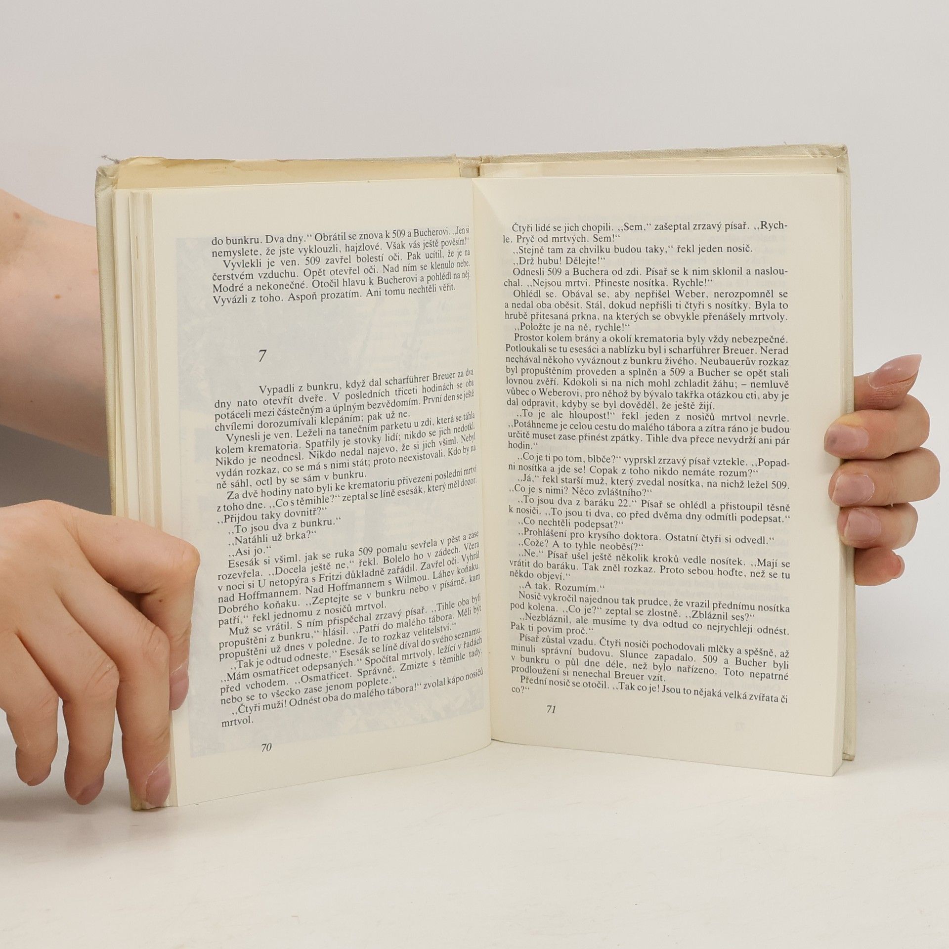 Koncentrační tábor Mellern slouží jako odkladiště vězňů - převážně Židů, kteří v důsledku tělesné slabosti již nejsou schopni práce. V nelidských podmínkách, špíně a o hladu, navíc pod kuratelou bezcitných fašistických katanů tady na sklonku války "přežívá" dvanáct "veteránů", obklopených řadou nově příchozích zbídačelých kostlivců. Téměř všichni již ztratili svou osobnost, minulost a individuální lidské rysy, jejich ponížené lidství se omezuje jen na základní živočišné potřeby. Stali se pouhými vězeňskými čísly s koncentráčnickými mimikrami. Přesto se mezi nimi najdou i tací, kteří si dokázali zachovat své "já". Edice: Živé knihy / ČSPB ; Sv. 144 Doslov: Zdenka Alanová Ilustrace: Jan Krásný