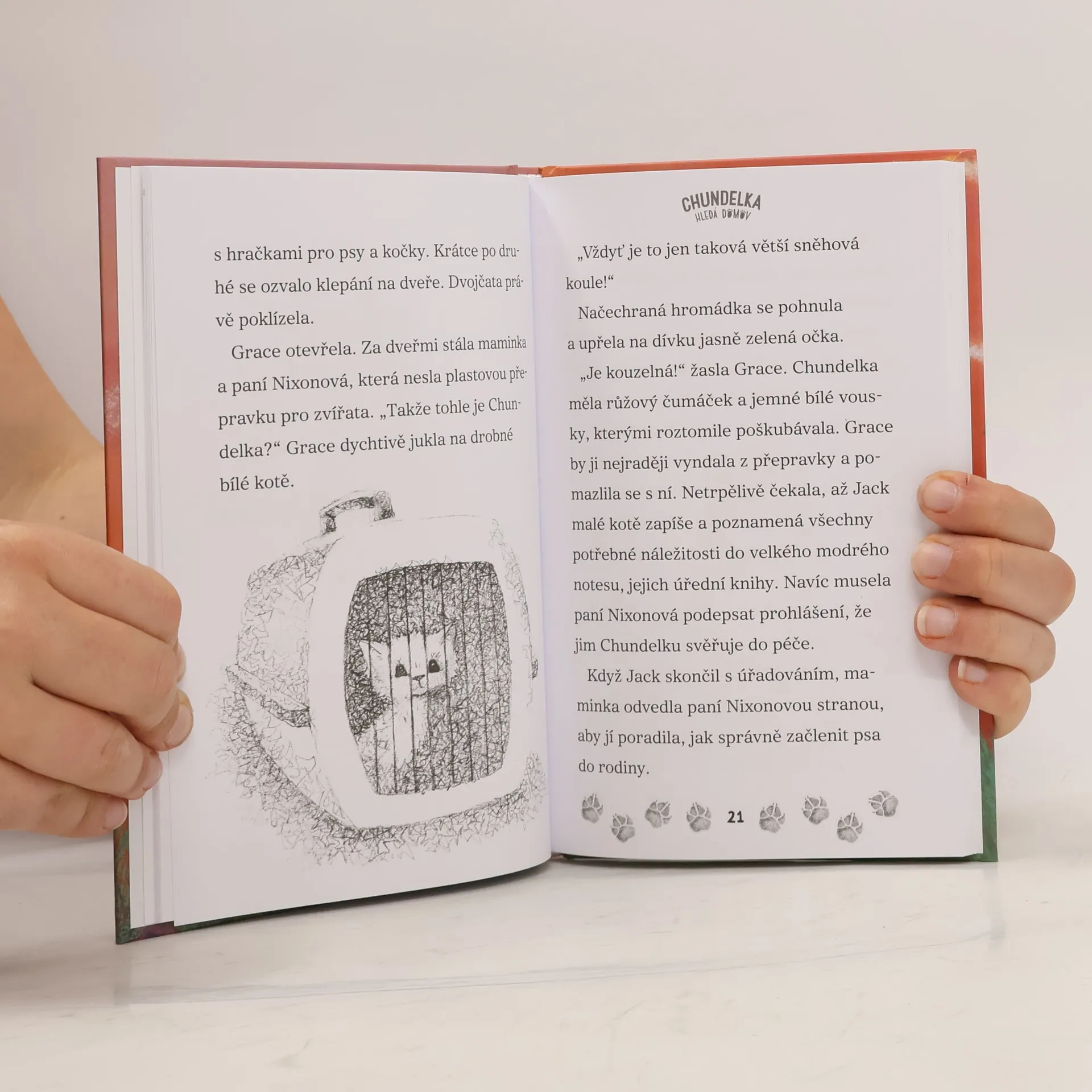 Devítiletá dvojčata Grace a Jack mají ráda zvířata, a tak se rozhodla, že si doma na zahradě založí útulek pro zvířata v dočasné péči – Báječný domov. Ať už je to pejsek, nebo kočička, jsou pevně rozhodnuta najít jim toho nejdokonalejšího páníčka na světě. Jednoho dne narazí na Chundelku, rozkošné koťátko s nádhernou srstí, které v sobě skrývá neobyčejný talent a moc rádo se nechává hýčkat. Jeho majitelka však o kotě nestojí. Podaří se dvojčatům najít Chundelce páníčka, který ji bude umět rozmazlovat a zároveň ocení její schopnosti? Pro děti od 5 let.