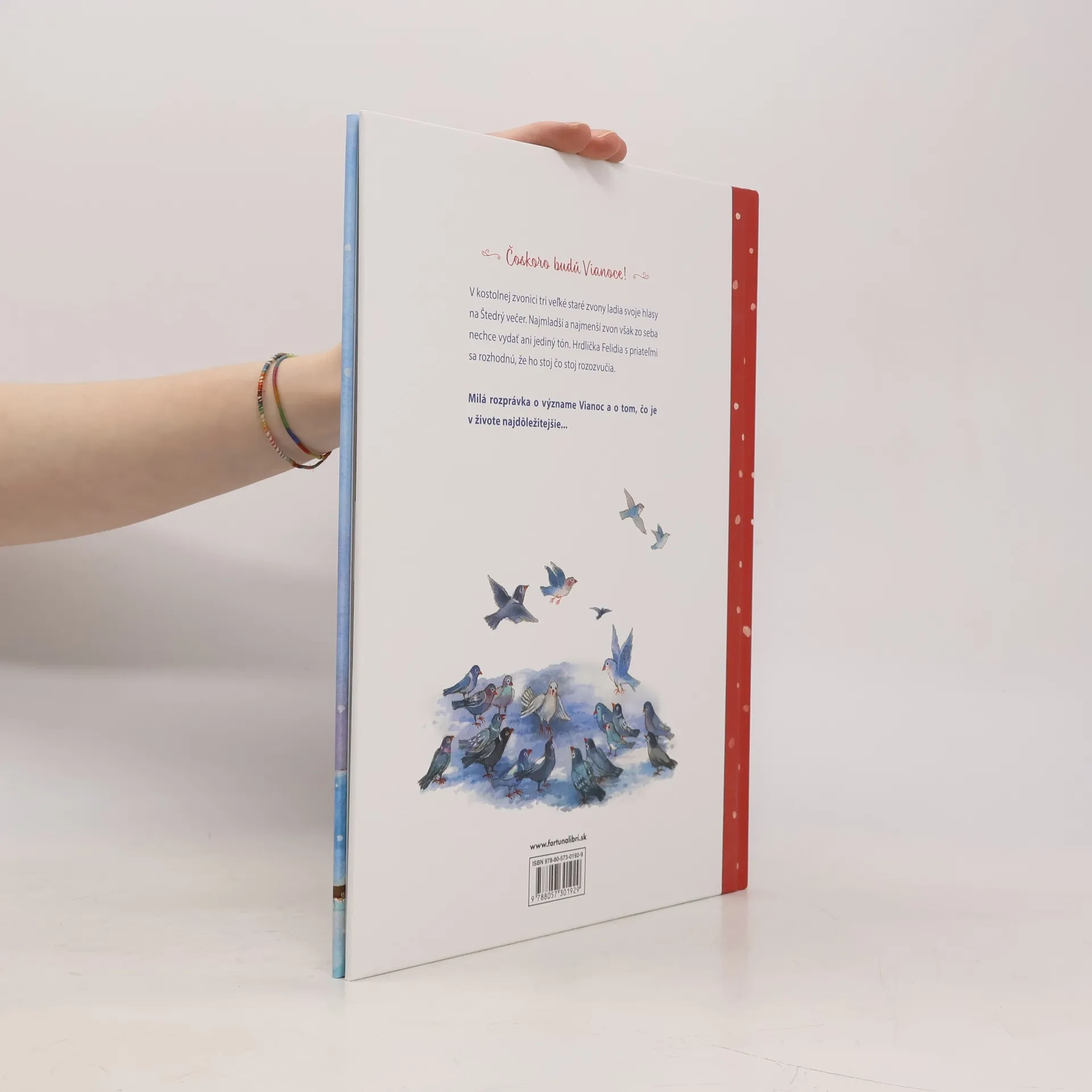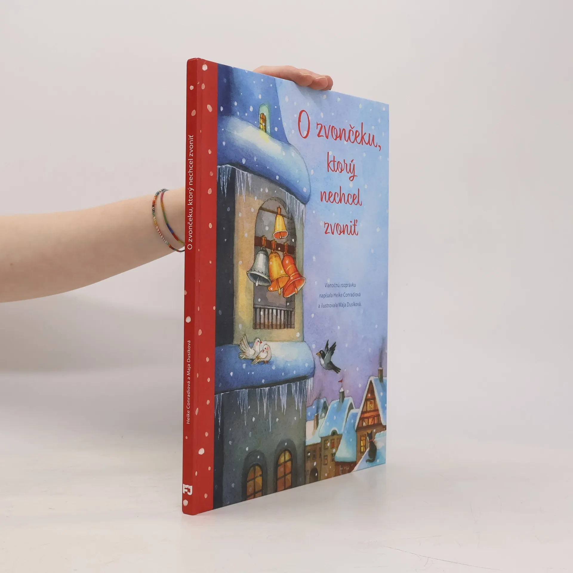 Milý príbeh o význame Vianoc s krásnymi ilustráciami. V mestečku na námestí stál veľký kostol a v jeho zvonici bývali štyri zvony. Tri veľké boli veľmi, veľmi staré. Iba ten najmenší bol nový, no jediný nezvonil. Čo sa mohlo stať? Hrdlička, múdra sova a aj iné zvieratká sa pokúšali nájsť správne slová, aby zvonček povzbudili a začal zvoniť. Dlho nič nezaberalo. Nakoniec tie správne slová našli...