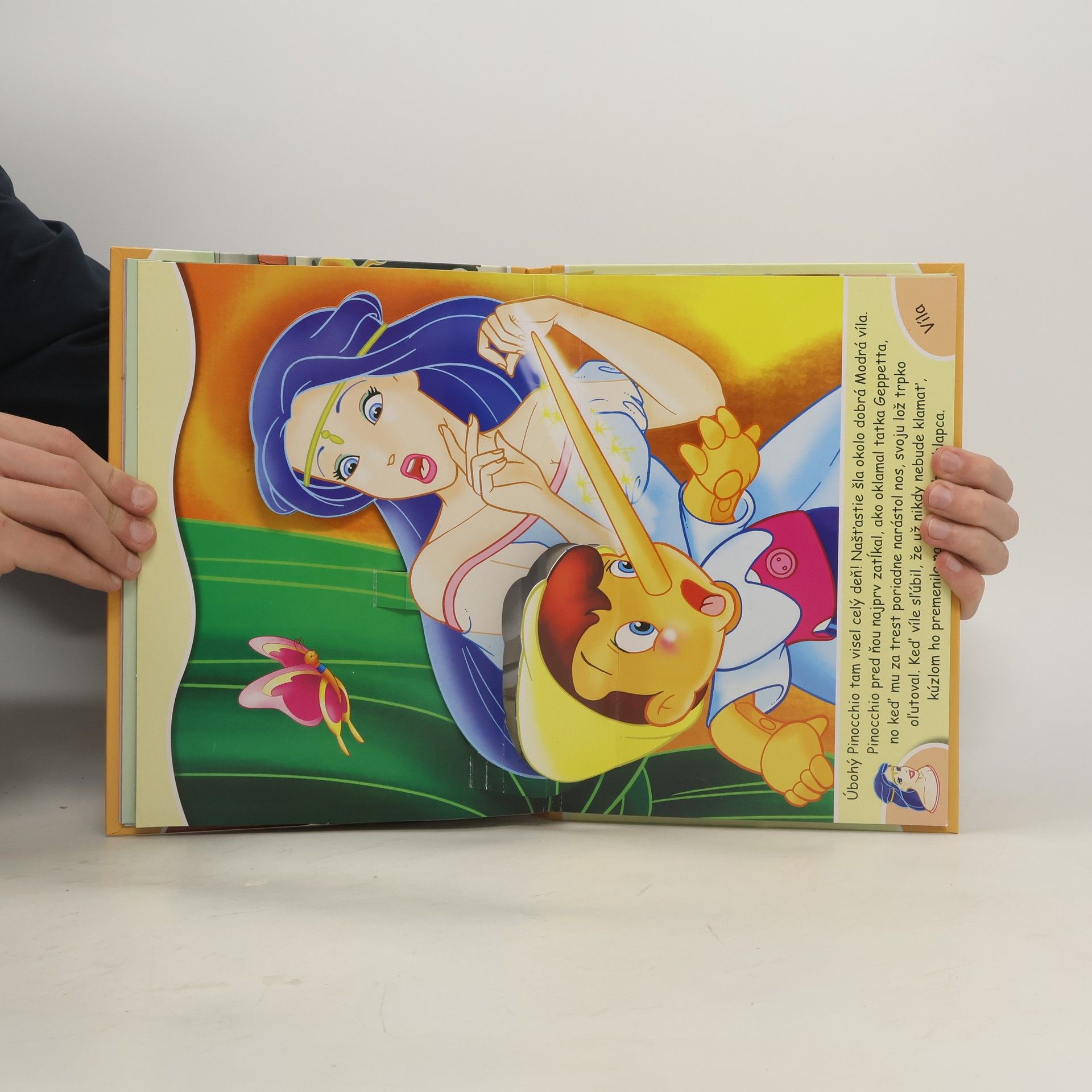 Priestorové rozprávky,leporela . Známy príbeh o drevenej bábke, ktorú si vystrúhal starý stolár, aby mu bez detí nebolo smutno, je v tomto leporele prerozprávaný pre našich najmenších. Trojdimenzionálne obrázky posilňujú vnímanie deja a rozvíjajú fantáziu detí.
