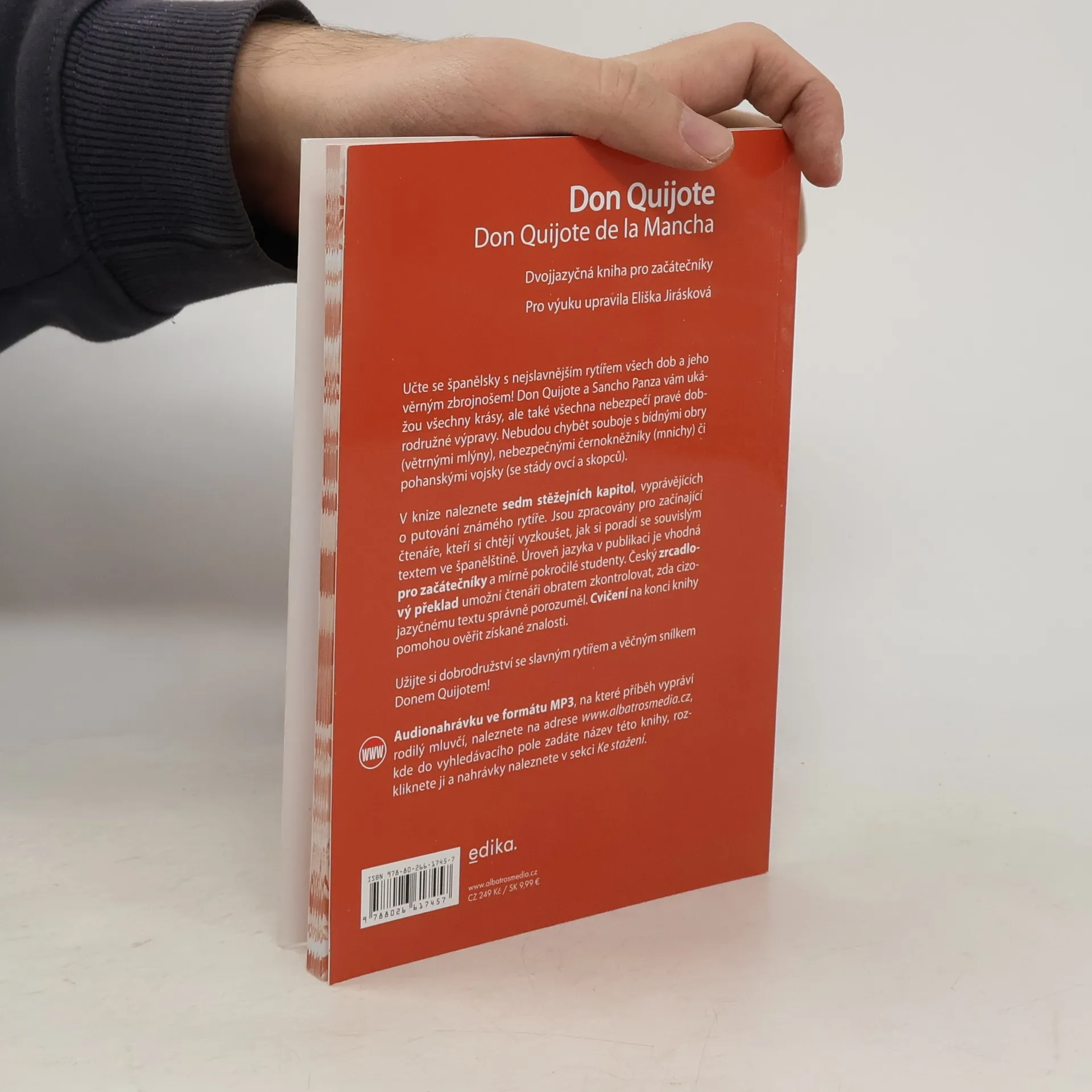 Dvojjazyčná kniha pro začátečníky. V knize naleznete sedm stěžejních kapitol, vyprávějících o putování známého rytíře. Jsou zpracovány pro začínající čtenáře, kteří si chtějí vyzkoušet, jak si poradí se souvislým textem ve španělštině. Úroveň jazyka v publikaci je vhodná pro začátečníky a mírně pokročilé studenty. K dispozici je také český zrcadlový překlad a cvičení na konci knihy. Audionahrávka ve formátu MP3, na které příběhy vypráví rodilý mluvčí, je zdarma ke stažení na webu.