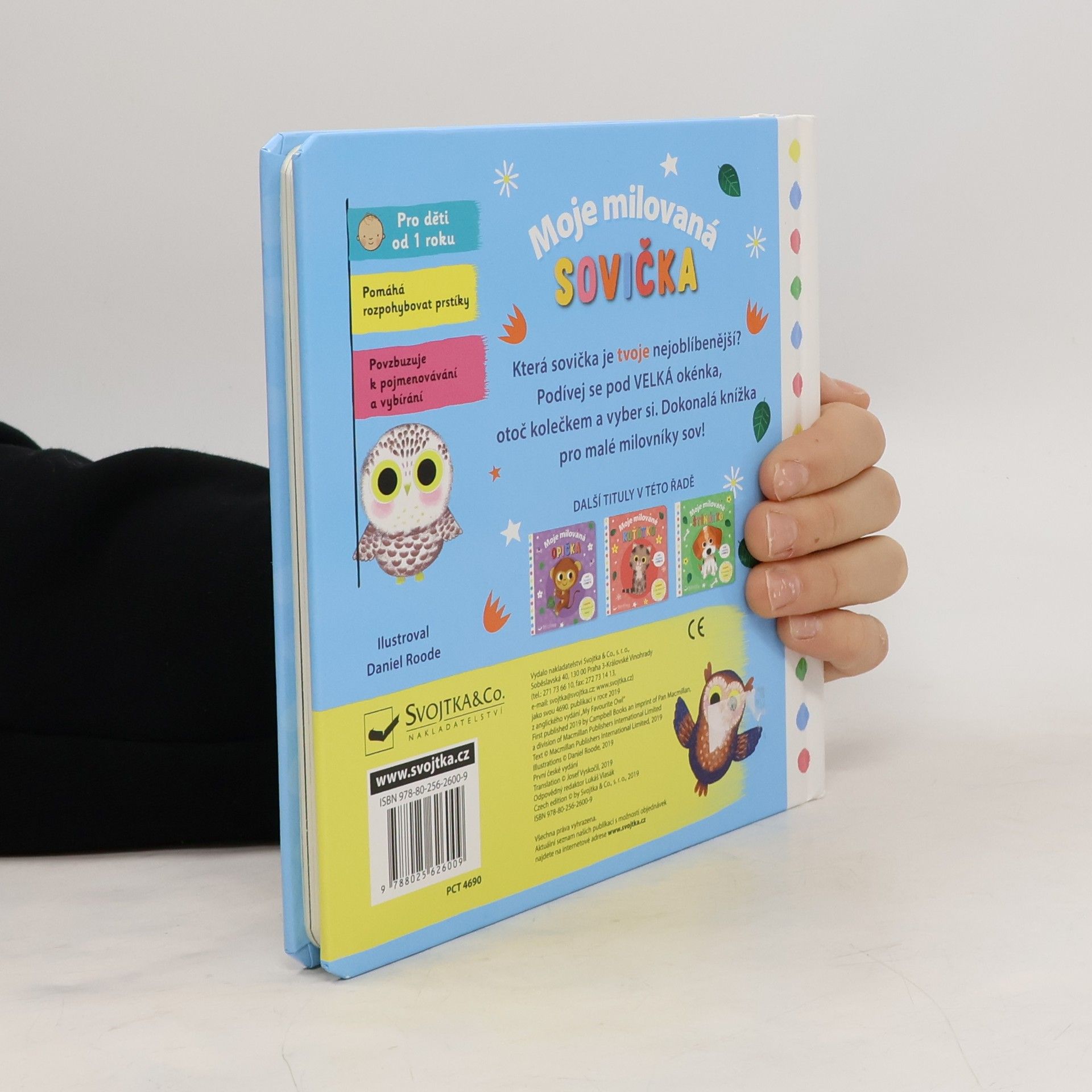 Interaktivní kniha s kartonovými listy pomáhá dětem rozvíjet jemnou motoriku. Obrázky doplňují krátká říkadla.
