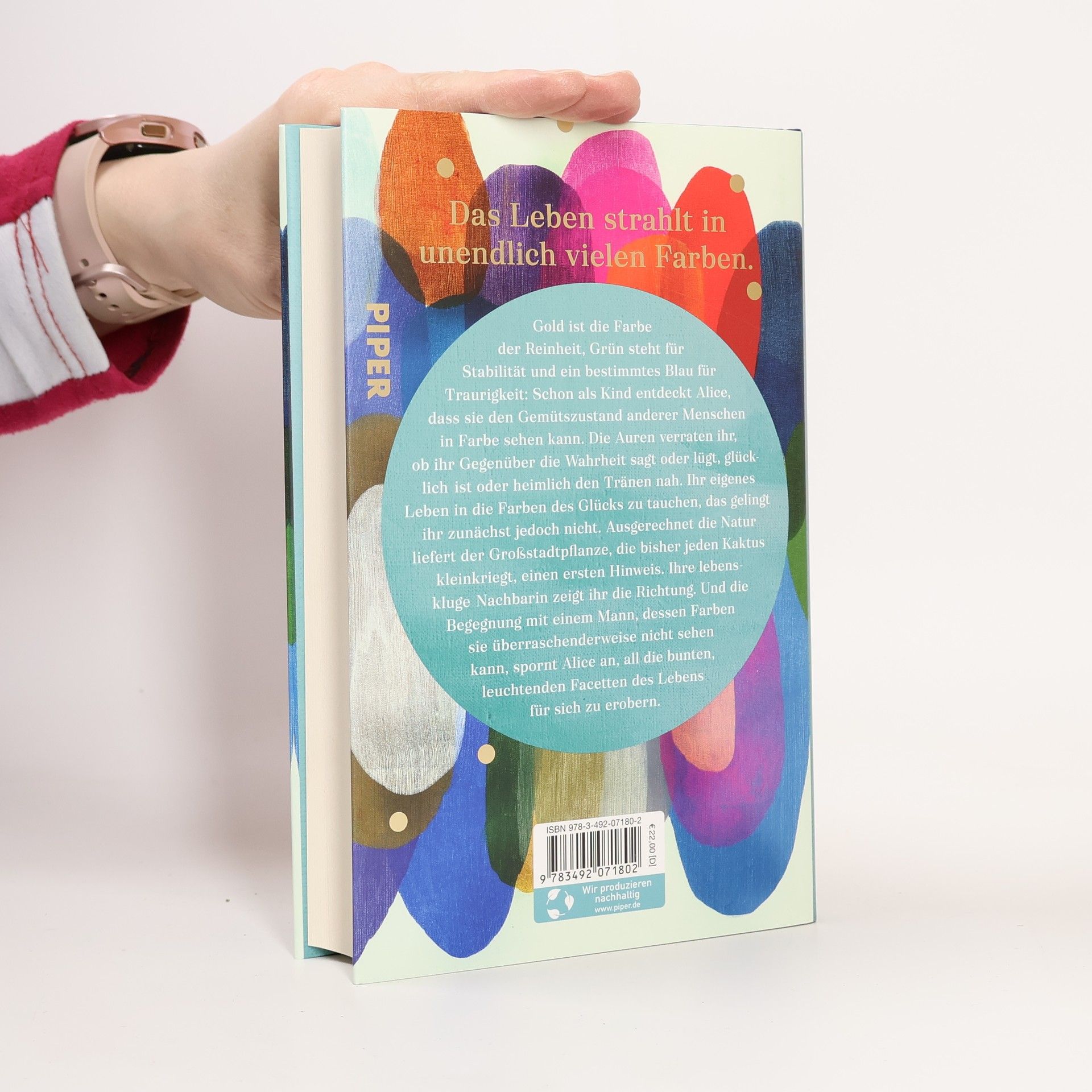 Das Leben strahlt in unendlich vielen Farben. Gold symbolisiert Reinheit, Grün steht für Stabilität und Blau für Traurigkeit. Alice entdeckt schon in ihrer Kindheit, dass sie die Gemütszustände anderer Menschen in Farben sehen kann. Diese Auren verraten ihr, ob jemand die Wahrheit sagt oder lügt, ob er glücklich ist oder traurig. Dennoch gelingt es Alice zunächst nicht, ihr eigenes Leben in die Farben des Glücks zu tauchen. Ein Hinweis kommt aus der Natur, die der Großstadtpflanze neue Perspektiven eröffnet. Ihre weise Nachbarin zeigt ihr den Weg, und die Begegnung mit einem Mann, dessen Farben sie nicht erkennen kann, wird zum Wendepunkt in ihrer Suche nach den bunten Facetten des Lebens. Cecelia Ahern, bekannt für ihre tiefgründigen und empathischen Geschichten, thematisiert in ihren Romanen zentrale Fragen des Lebens: Was ist Glück? Wer bin ich? Was gibt meinem Leben Sinn? Ihre Werke sind eine gelungene Mischung aus Dunkelheit und Licht, Trauer und Humor. In dieser Erzählung steht Alice im Mittelpunkt, die sich mutig den Herausforderungen ihres Lebens stellt, neue Stärken entdeckt und erkennt, dass ihre Gabe ein Geschenk ist. Die Geschichte ermutigt dazu, an sich selbst zu glauben und Träume zu verwirklichen.