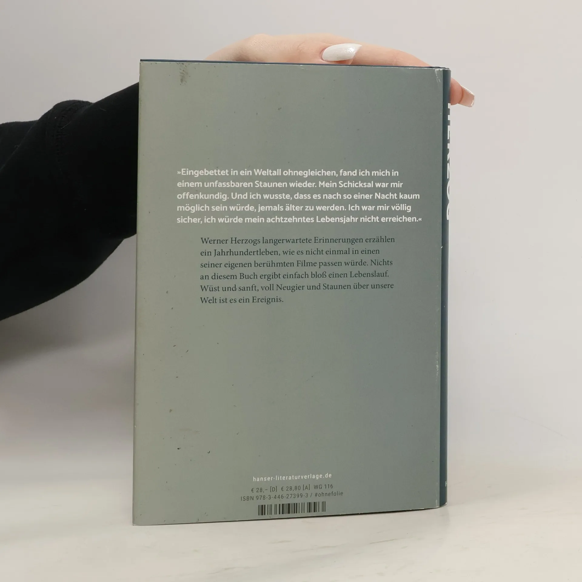 Die Lebenserinnerungen des großen Filmemachers Werner Herzog. - "Jetzt schon ein Klassiker.“ Daniel Kothenschulte, Frankfurter Rundschau Werner Herzogs lang erwartete Erinnerungen erzählen ein Jahrhundertleben, wie es nicht einmal in einen seiner eigenen berühmten Filme passen würde. Ein immerzu hungriger Junge, mit der Mutter aus dem bombardierten München in ein bitterarmes Nest in den Alpen geflohen. Ein Jugendlicher, der ganz allein lostrampt und bald darauf im hintersten Ägypten im Fieberwahn auf den Tod wartet. Ein Liebender, ein Enthusiast, ein Getriebener: Ein Mann, der mitten im Dschungel leise auf den tobenden Klaus Kinski einredet, ein Mann, der weinend um seinen Freund Bruce Chatwin an dessen Sterbebett sitzt. Wüst und sanft, voller Lebensgier und Staunen über unsere Welt ist dieses Buch ein literarisches Ereignis.