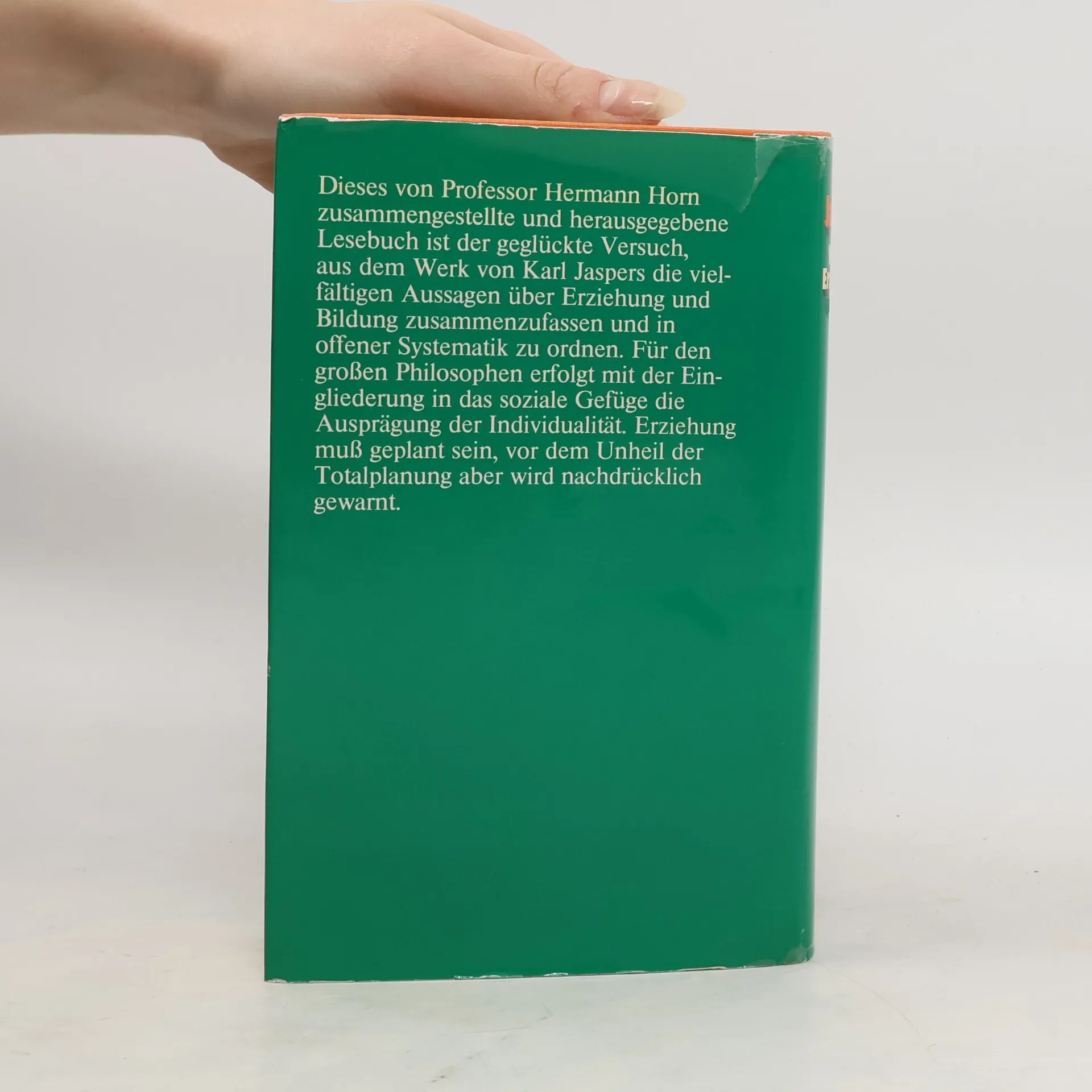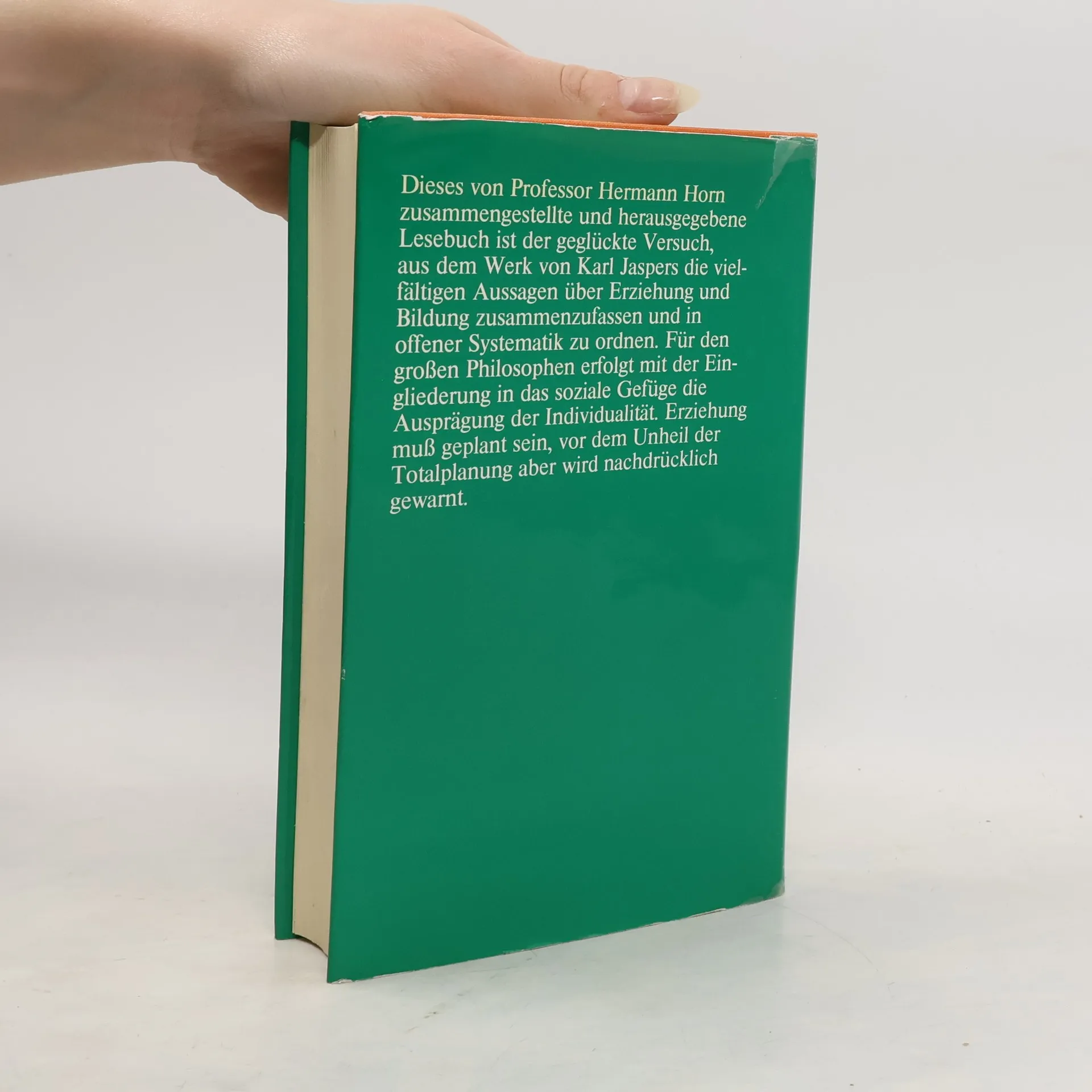 Was kann und soll Erziehung leisten? Karl Jaspers definierte Erziehung und Bildung als große humane und soziale Aufgabe. Dieses Lesebuch stellt seine Äußerungen zur Erziehung zusammen, so dass im Spiegel dieser Gedanken das philosophische Konzept von Jaspers über den Sinn des Erziehens Konturen gewinnt.
