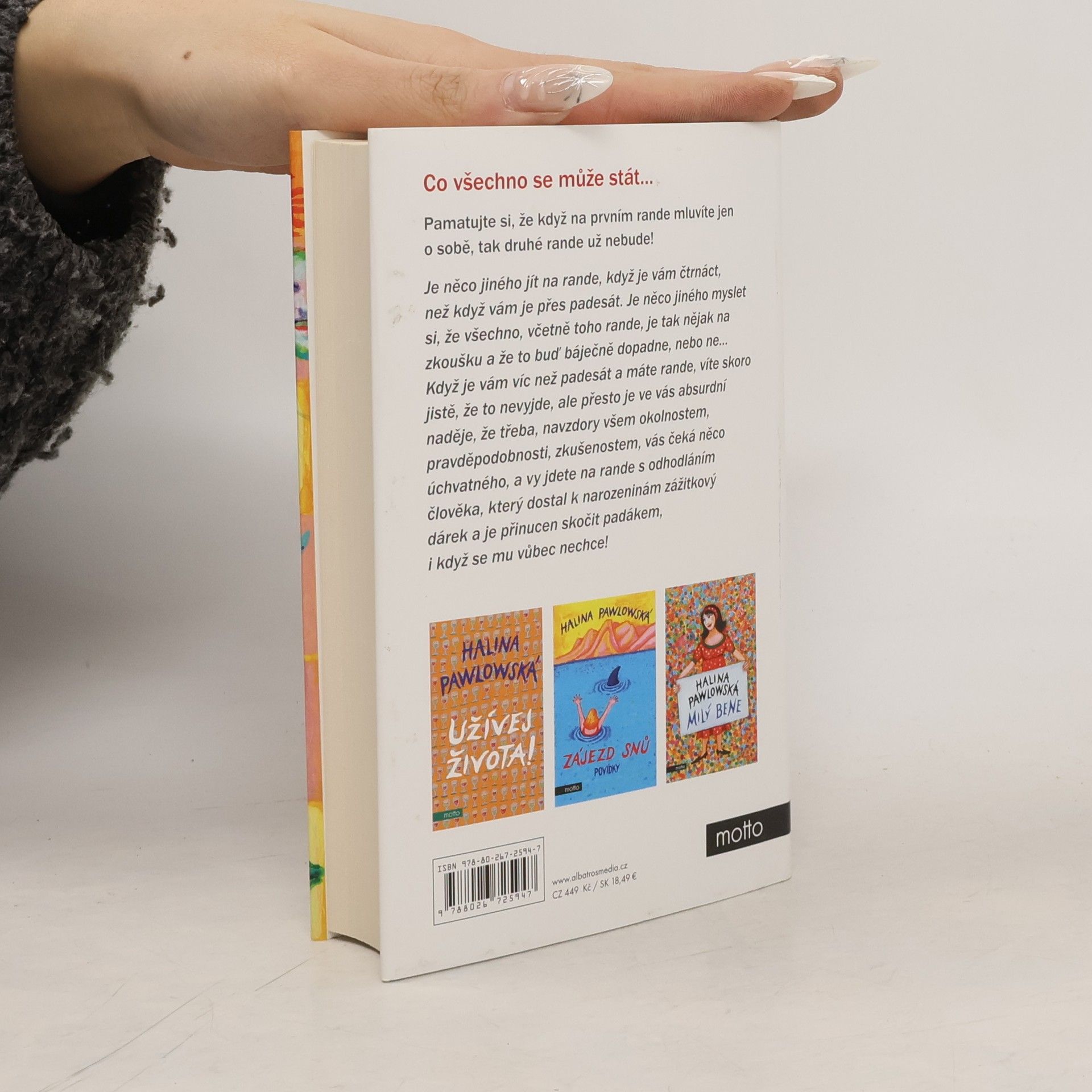 Krátké i dlouhé povídky Haliny Pawlowské. Pamatujte si, že když na prvním rande mluvíte jen o sobě, tak druhé rande už nebude! Je něco jiného jít na rande, když je vám čtrnáct, než když vám je přes padesát. Je něco jiného myslet si, že všechno, včetně toho rande, je tak nějak na zkoušku, a že to buď báječně dopadne, nebo ne Když je vám víc než padesát a máte rande, víte skoro jistě, že to nevyjde, ale přesto je ve vás absurdní naděje, že třeba, navzdory všem okolnostem, pravděpodobnosti, zkušenostem, vás čeká něco úchvatného a vy jdete na rande s odhodláním člověka, který dostal k narozeninám zážitkový dárek a je přinucen skočit s padákem, i když se mu vůbec nechce!