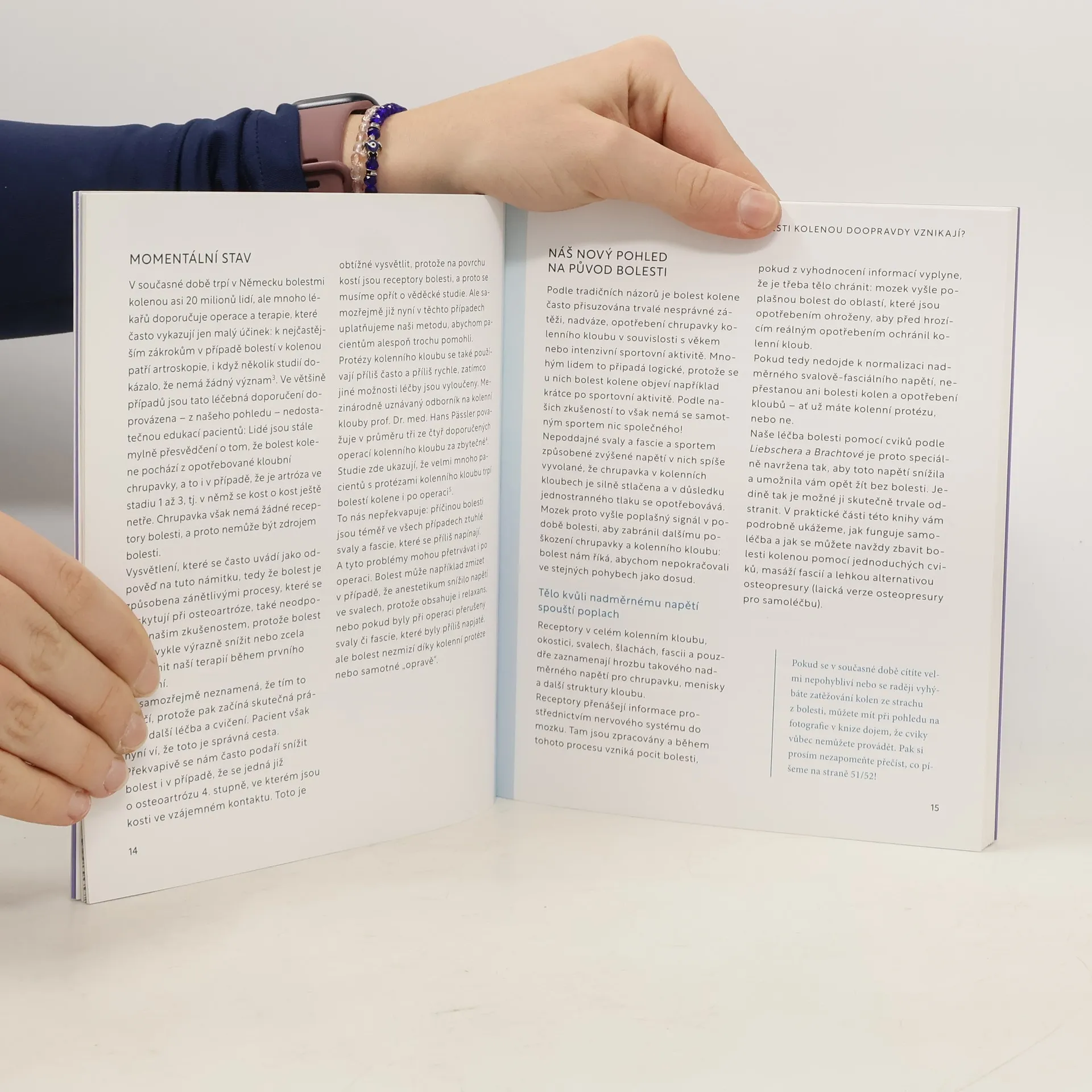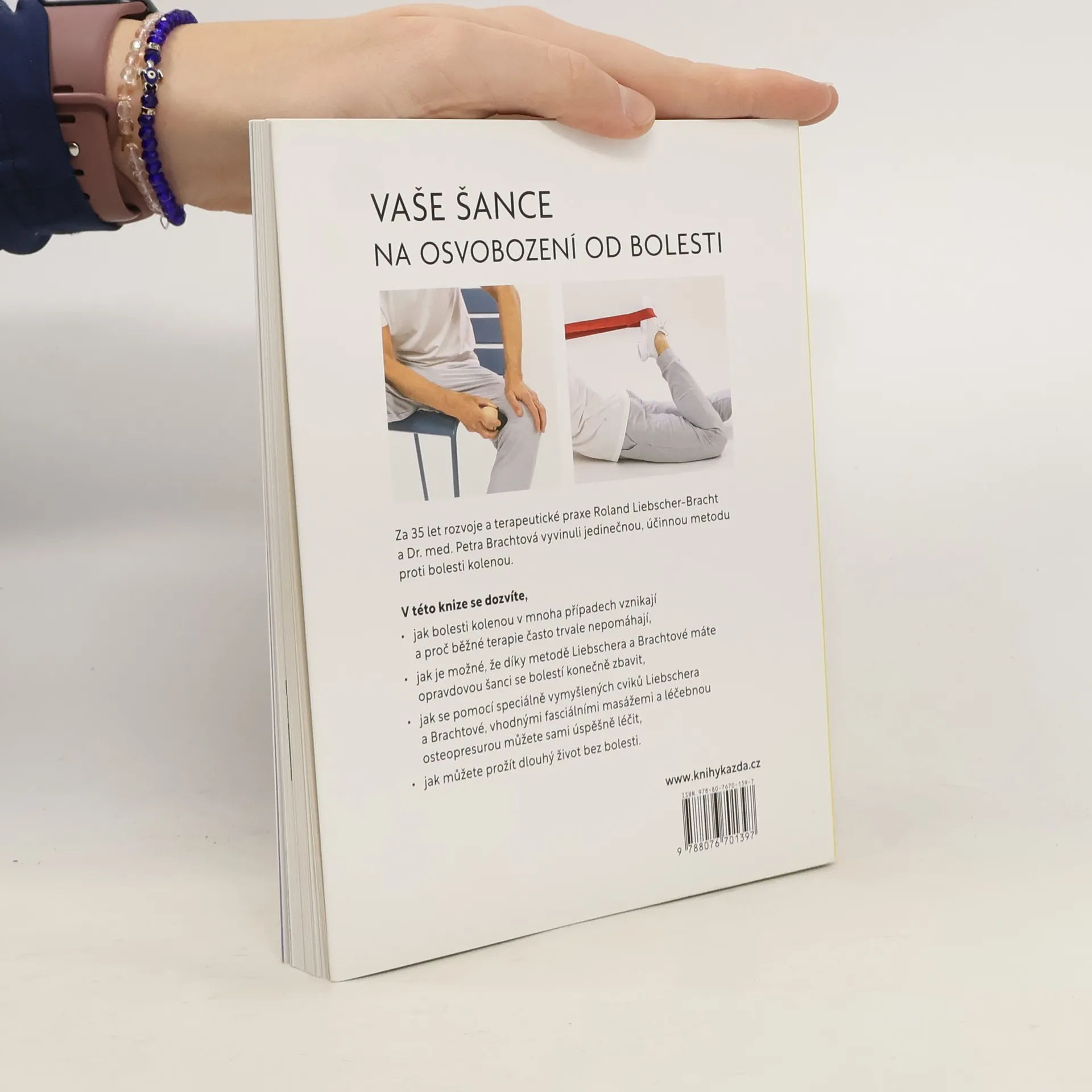 Každý čtvrtý člověk trpí bolestí kolene, která často zůstává i po operaci. Specialista Roland Liebscher-Bracht vyvinul spolu se svou manželkou, lékařkou Dr. Petra Bracht, jedinečně účinnou metodu proti bolesti kolenou. Na základě zkušeností z více než 30 let výzkumu a terapeutické praxe vysvětlují autoři, proč byl původ bolesti dosud nepochopený – skutečnou příčinou bolesti totiž bývá nadměrné napětí ve svalech a fasciích. Roland Liebscher-Bracht osobně vede v této knize samoléčbu pomocí vysoce účinného, speciálně vyvinutého cvičebního programu sestávajícího z lehké osteopresury, protahovacích a posilovacích cvičení a fasciální masáže. Díky této knize pochopíte, jak k bolesti kolena dochází a proč konvenční terapie obvykle dlouhodobě nepomáhají. Jak vyřešit akutní bolest kolena pomocí samoléčby. Ale zejména se vám do rukou dostane jedinečný, speciálně vyvinutý cvičební program Liebscher & Bracht díky kterému můžete zůstat dlouhodobě mobilní a bez bolesti.