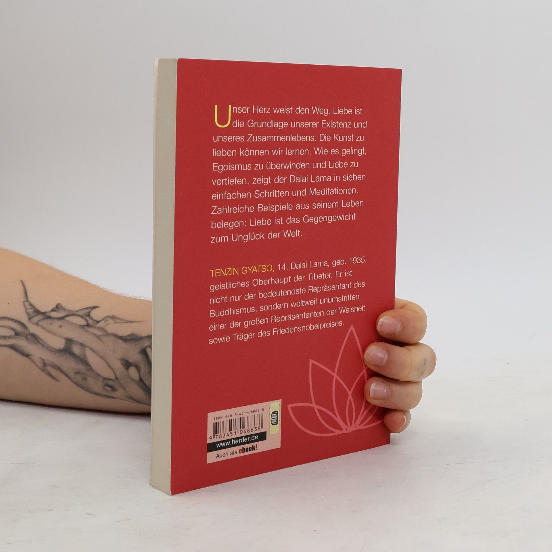 Unser Herz weist den Weg. Liebe ist die Grundlage unserer Existenz und unseres Zusammenlebens. Die Kunst zu lieben können wir lernen. Wie es gelingt, Egoismus zu überwinden und Liebe zu vertiefen, zeigt der Dalai Lama in sieben einfachen Schritten und Meditationen. Zahlreiche Beispiele aus seinem Leben belegen: Liebe ist das Gegengewicht zum Unglück der Welt. Unser Herz weist den Weg. Liebe ist die Grundlage unserer Existenz und unseres Zusammenlebens. Die Kunst zu lieben können wir lernen. Wie es gelingt, Egoismus zu überwinden, Liebe zu vertiefen und in unseren Beziehungen zu erweitern, zeigt der Dalai Lama in sieben einfachen, klaren Schritten und Meditationen. Wenn wir in Menschen, die wir Feinde nennen, auch Freunde entdecken; wenn wir Güte und Freundlichkeit wertschätzen – und auch erwidern, wo wir ihnen begegnen, wenn wir im Leben Hingabe verwirklichen, dann haben wir den Schlüssel für ein dauerhaft glückliches und erfülltes Leben in der Hand. Zahlreiche Beispiele aus seinem eigenen Leben belegen: Liebe ist das Gegengewicht zum Unglück der Welt. Ein Buch, das Herz und Sinne berührt.