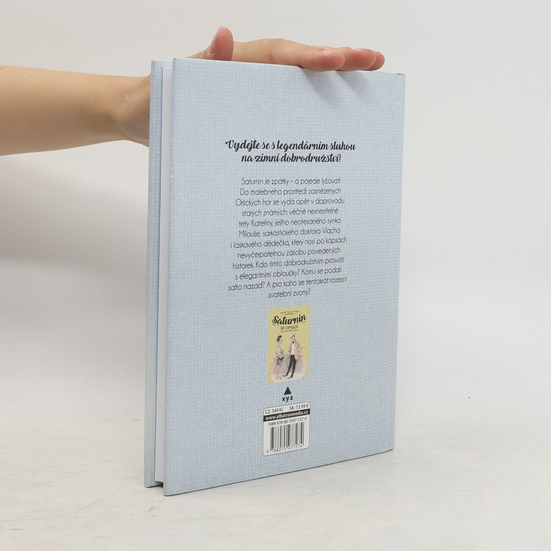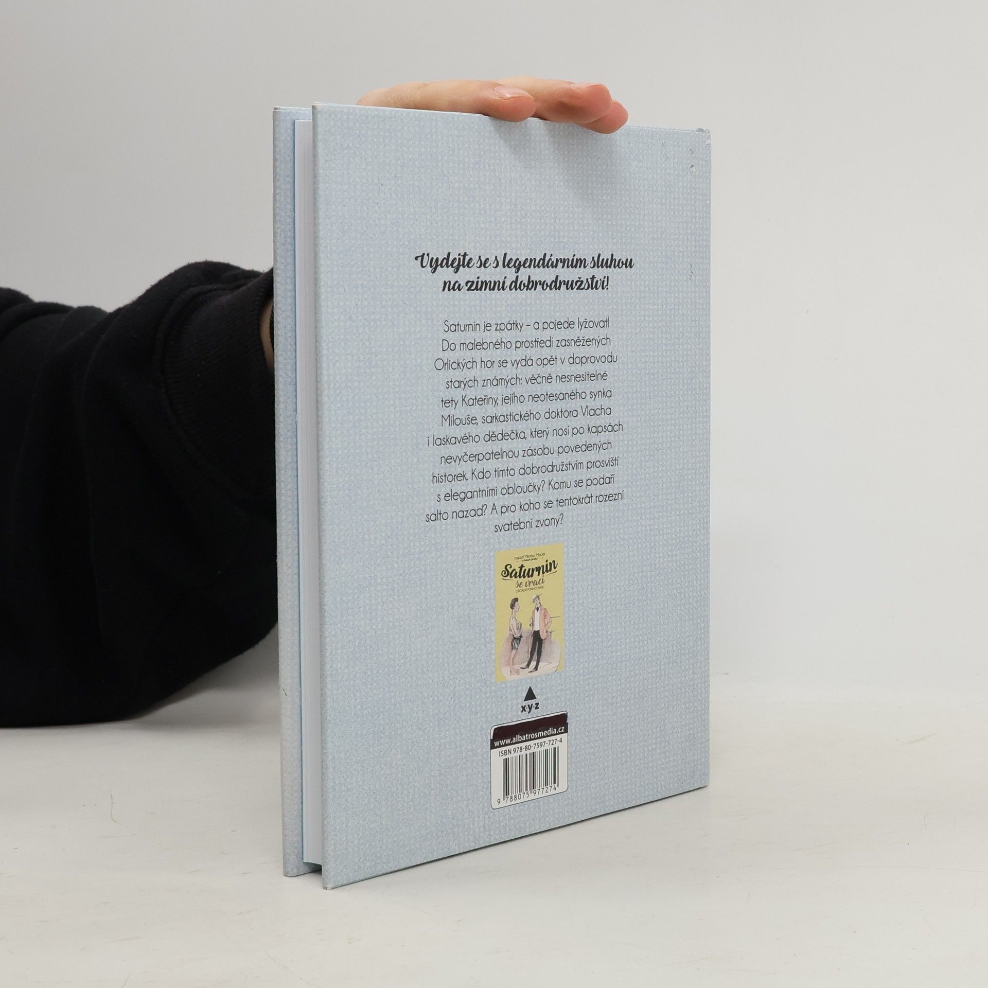 Legendární sluha Saturnin je zpátky – a pojede lyžovat! Do malebného prostředí zasněžených Orlických hor se vydá opět v doprovodu starých známých: věčně nesnesitelné tety Kateřiny, jejího neotesaného synka Milouše, sarkastického doktora Vlacha i laskavého dědečka, který nosí po kapsách nevyčerpatelnou zásobu povedených historek. Kdo tímto dobrodružstvím prosviští s elegantními obloučky? Komu se podaří salto nazad? A pro koho se tentokrát rozezní svatební zvony?