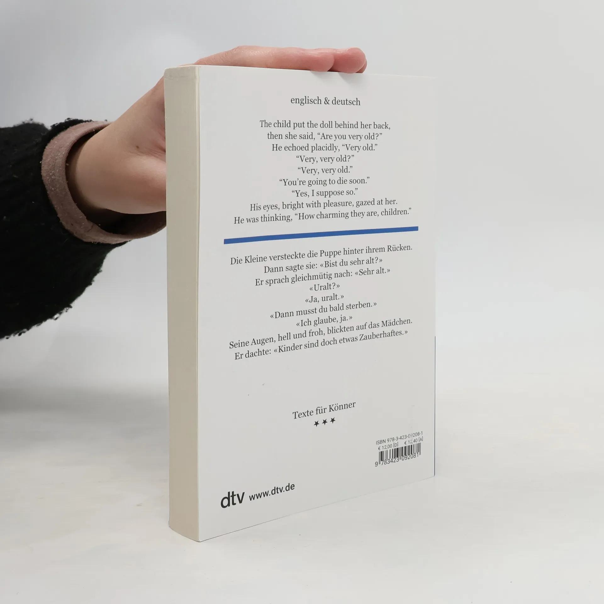 Dieses Taschenbuch enthält 22 Kurzgeschichten - die kürzeste zwei, die längste fünf Seiten lang - von britischen und amerikanischen Autoren des 20. Jahrhunderts. Nicht einfach Kurzgeschichten, sondern: kurze Kurzgeschichten.Manche dieser konzentrierten Prosastücke sind einfach liebenswürdig oder einfach amüsant. Aber viele sind, nicht ganz einfach, beunruhigend oder schmerzend. Fast alle sind hintersinnig, doppelbödig. Und einige bringen im Kopf des Lesers eine - kleinere oder größere - Welt zum Erblühen. Oder auch zum Einstürzen. Wer das gerade vergangene Jahrhundert erkennen will (und sich selber darin), der liest dieses Taschenbuch mit Gewinn: er weiß nachher 22mal so viel wie zuvor. dtv zweisprachig – Die Vielfalt der Sprachen auf einen Blick Die Reihe umfasst drei Sprach-Niveaus – Einsteiger, Fortgeschrittene und Könner – und mittlerweile über 130 Titel in vielen Sprachen. Landeskunde, Kulturgeschichte und Redewendungen, zeitgenössische und klassische Texte in unterschiedlichen Formen und Genres – von der Kurzgeschichte bis zum Krimi – für jeden Lesegeschmack ist etwas dabei. Einzigartig ist die konsequente Zeilengleichheit zwischen Originaltext und Übersetzung, damit man vom ersten bis zum letzten Wort in zwei Sprachwelten zuhause ist.