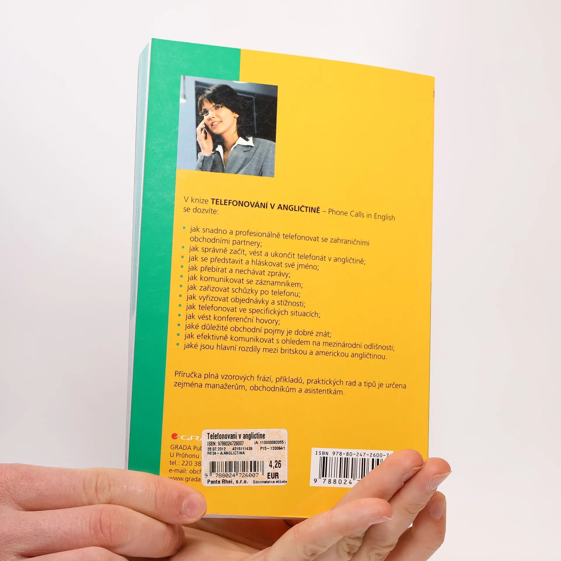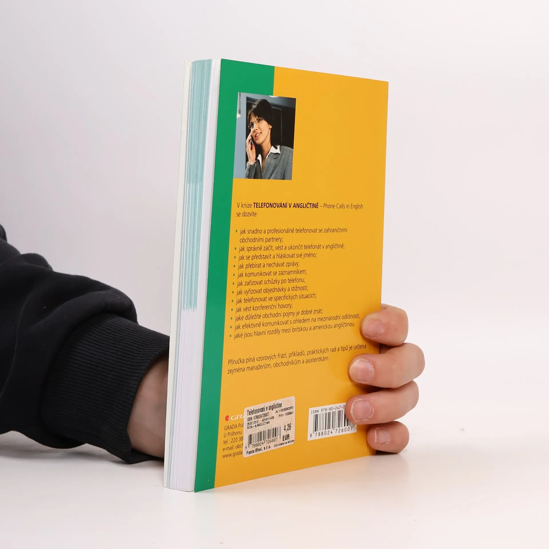Příručka plná vzorvých frází, příkladů praktických rad a tipů je určena zejména manažerům, obchodníkům a asistentkám.V knize TELEFONOVÁNÍ V ANGLIČTINĚ - Phone Calls in English se dozvíte:- jak snadno a profesionálně telefonovat se zahraničními obchodními partnery- jak správně začít, vést a ukončit telefonát v angličtině- jak se představit a hláskovat své jméno- jak přebírat a nechávat zprávy- jak komunikovat se zákazníkem- jak zařizovat schůzky po telefonu- jak vyřizovat objednávky a stížnosti- jak telefonovat ve specifických situacích- jak vést konferenční hovory- jaké důležité obchodní pojmy je dobré znát- jak efektivně komunikovat s ohledem na mezinárodní odlišnosti- jaké jsou hlavní rozdíly mezi britskou a americkou angličtinou