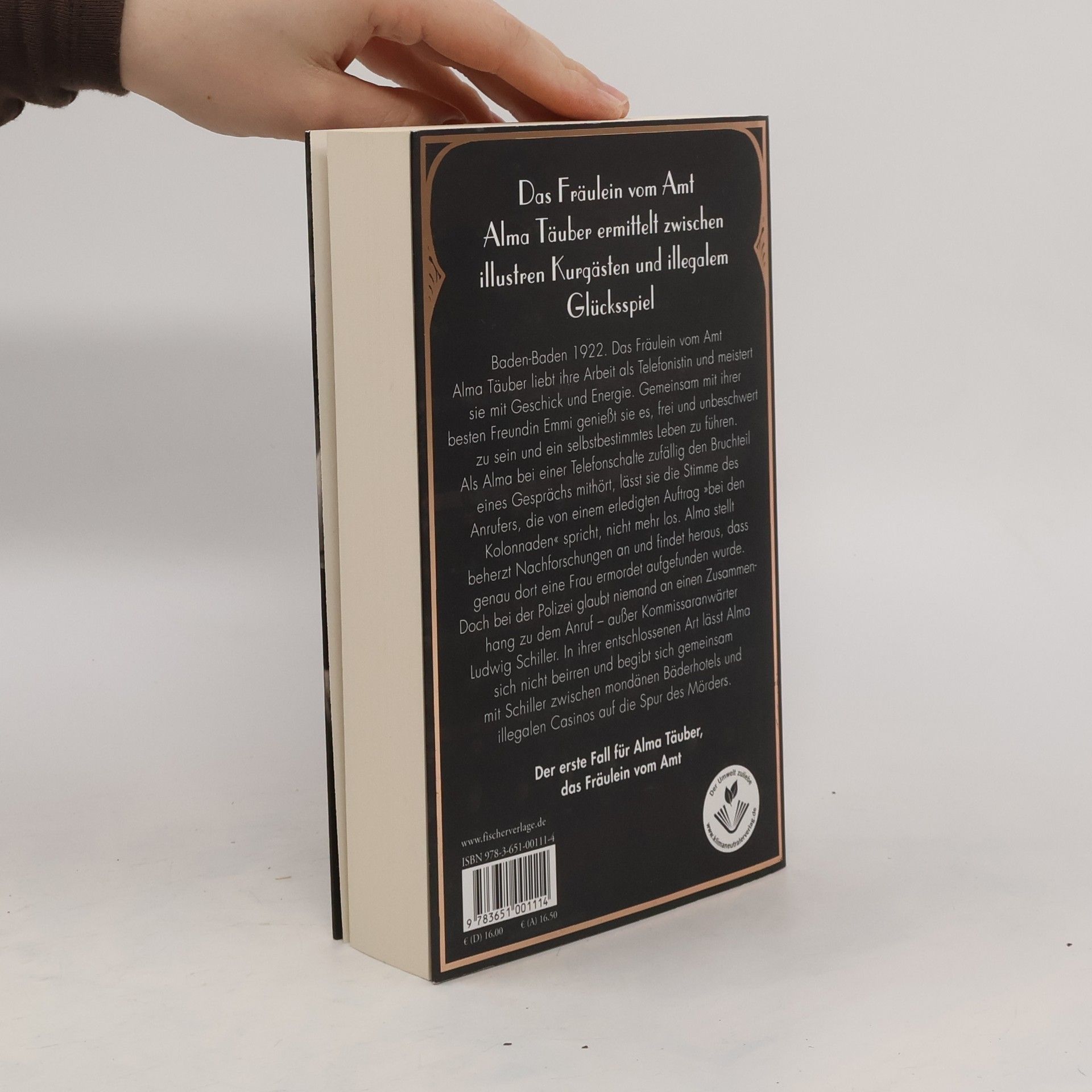 Alma Täuber ermittelt zwischen illustren Kurgästen und illegalem Glücksspiel – der erste Fall für das Fräulein vom Amt Baden-Baden 1922. Das Fräulein vom Amt Alma Täuber liebt ihre Arbeit als Telefonistin und meistert sie mit Geschick und Energie. Gemeinsam mit ihrer besten Freundin Emmi genießt sie es, frei und unbeschwert zu sein und ein selbstbestimmtes Leben zu führen. Als Alma bei einer Telefonschalte zufällig den Bruchteil eines Gesprächs mithört, lässt sie die Stimme des Anrufers, die von einem erledigten Auftrag »bei den Kolonnaden« spricht, nicht mehr los. Alma stellt beherzt Nachforschungen an und findet heraus, dass genau dort eine Frau ermordet aufgefunden wurde. Doch bei der Polizei glaubt niemand an einen Zusammenhang zu dem Anruf – außer Kommissaranwärter Ludwig Schiller. In ihrer entschlossenen Art lässt Alma sich nicht beirren und begibt sich gemeinsam mit Schiller zwischen mondänen Bäderhotels und illegalen Casinos auf die Spur des Mörders.