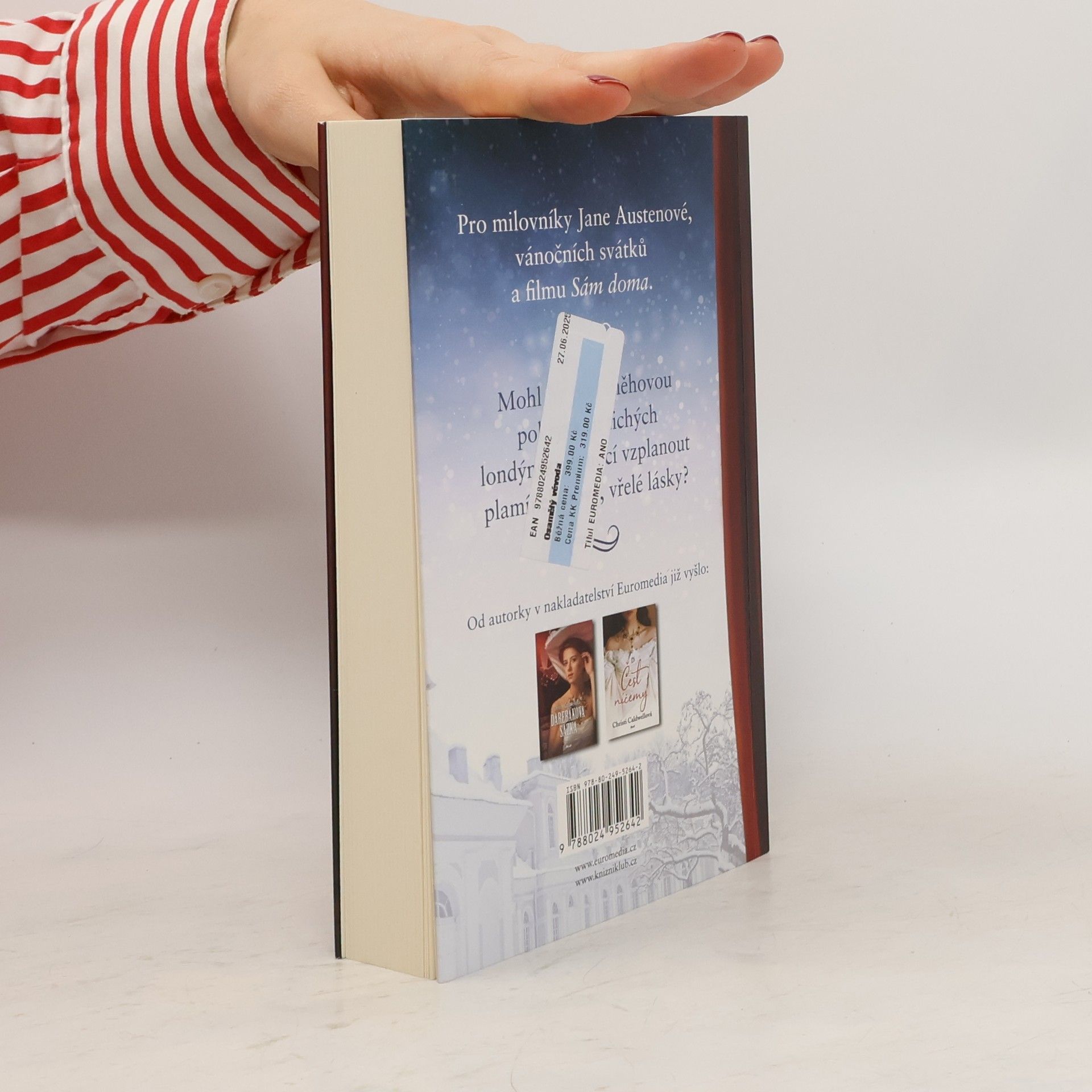Lady Myrtle McQuoidová se vždy cítila být svými nejbližšími opomíjena. Letošní vánoční sezona tak nemůže být výjimkou. Když její hlučná rodina opustí své londýnské sídlo a vydá se na venkov, Myrtle si záhy uvědomí, že na ni zapomněli. Důležité je však zůstat v teple, mít co jíst a nějak se rozptýlit, než příbuzní přijdou na svůj omyl a vrátí se pro ni. Ovdovělý vévoda z Aragonu, Val Bancroft, touží po samotě, klidu a tichu. Rozhodně by se rád vyhnul veselé, upovídané lady McQuoidové ze sousedství. V zimních stínech však číhá nebezpečí a dívka potřebuje ochránit. Mohl by pod sněhovou pokrývkou tichých londýnských nocí vzplanout plamínek nové, vřelé lásky?