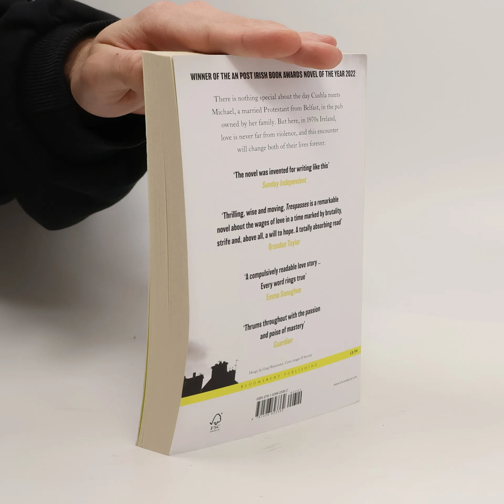 There is nothing special about the day Cushla meets Michael, a married man from Belfast, in the pub owned by her family. But here, love is never far from violence, and this encounter will change both of their lives forever. As people get up each morning and go to work, school, church or the pub, the daily news rolls in of another car bomb exploded, another man beaten, killed or left for dead. In the class Cushla teaches, the vocabulary of seven-year-old children now includes phrases like 'petrol bomb' and 'rubber bullets'. And as she is forced to tread lines she never thought she would cross, tensions in the town are escalating, threatening to destroy all she is working to hold together. Tender and shocking, Trespasses is an unforgettable debut of people trying to live ordinary lives in extraordinary times.[Bokinfo]