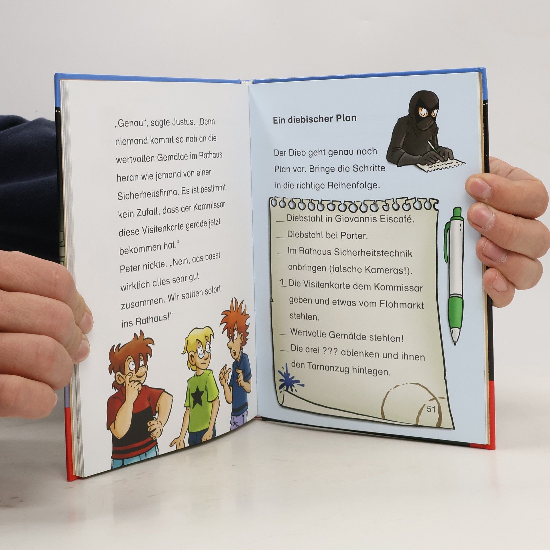 Justus, Peter und Bob sind beste Freunde und Detektive! Zusammen haben die drei ??? schon viele knifflige Fälle gelöst. Ein Dieb will ein wertvolles Gemälde aus dem Rathaus stehlen. Die drei ??? Kids müssen das unbedingt verhindern. Lesen lernen ist schwer? Nicht mit dieser spannenden Geschichte, die auch Leseanfänger ab Klassenstufe 2 leicht bewältigen können. Illustrationen und ein Leserätsel am Ende jedes Kapitels machen den Band abwechslungsreich, sorgen für Erfolgserlebnisse und erhöhen die Lese-Motivation. So macht der Einstieg ins selbstständige Bücherlesen einfach Spaß.