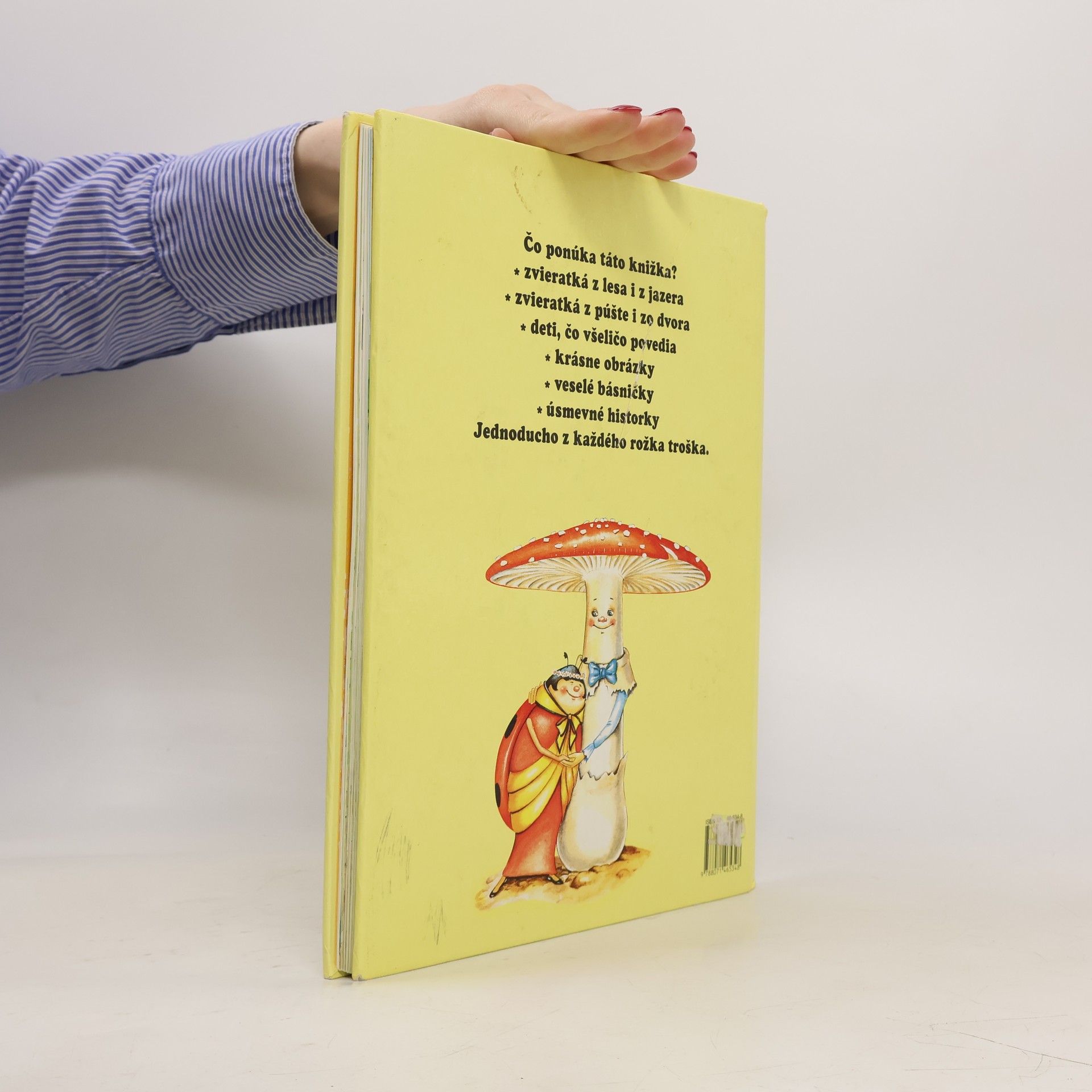 Knižka, ktorá je plná tajomstiev z každého rožka... Ponúka zvieratká z lesa i jazera, zvieratká z púšte aj zo dvora, deti, čo všeličo povedia, krásne obrázky, veselé básničky a úsmevné historky.
