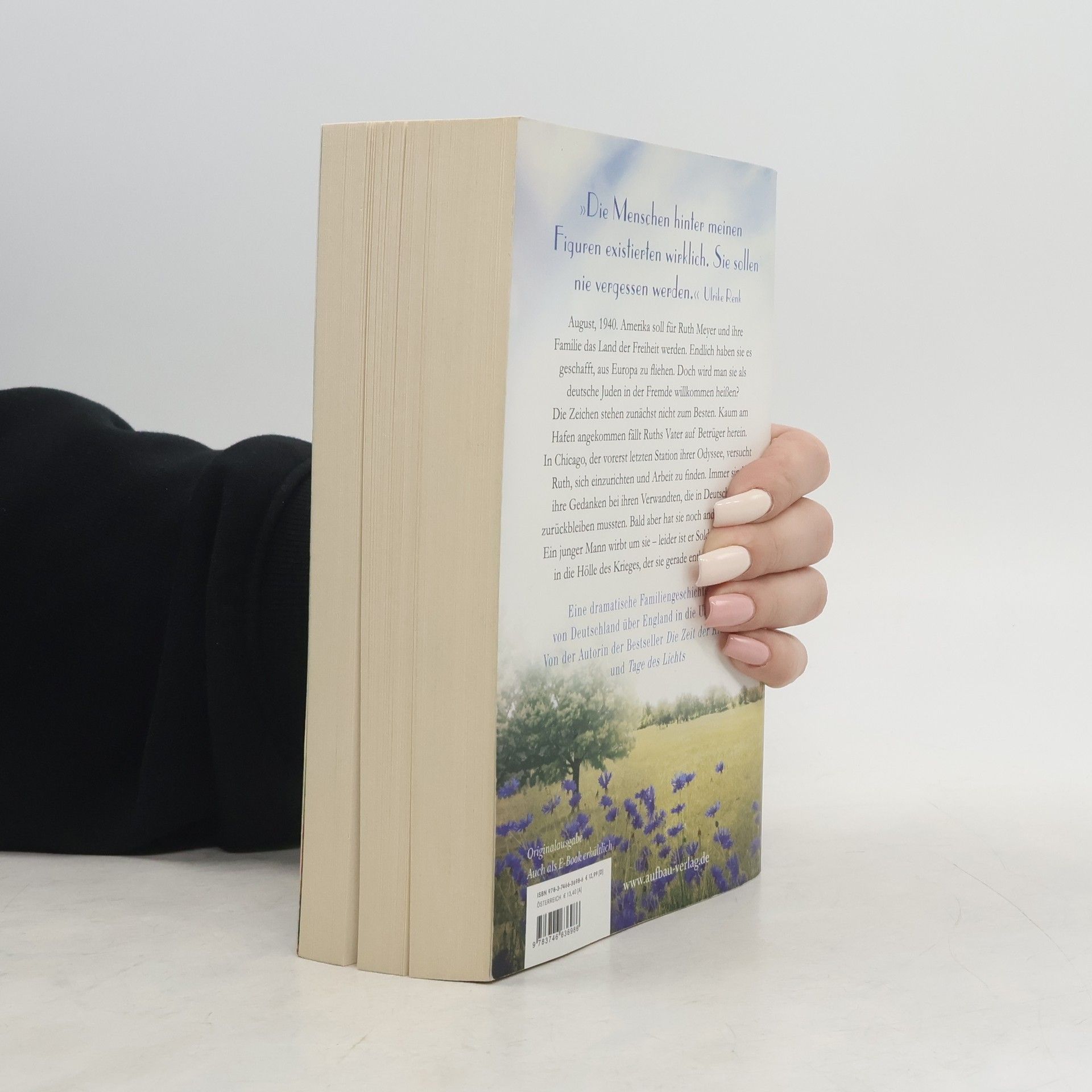 „Die Menschen hinter meinen Figuren existierten wirklich. Sie sollen nie vergessen werden.“ Ulrike Renk . August, 1940. Amerika soll für Ruth Meyer und ihre Familie das Land der Freiheit werden. Endlich haben sie es geschafft, aus Europa zu fliehen. Doch wird man sie als deutsche Juden in der Fremde willkommen heißen? Die Zeichen stehen zunächst nicht zum Besten. Kaum am Hafen angekommen fällt Ruths Vater auf Betrüger herein. In Chicago, der vorerst letzten Station ihrer Odyssee, versucht Ruth sich einzurichten und Arbeit zu finden. Immer sind ihre Gedanken bei ihren Verwandten, die in Deutschland zurückbleiben mussten. Bald aber hat sie noch andere Sorgen. Ein junger Mann wirbt um sie – leider ist er Soldat und muss in die Hölle des Krieges, der sie gerade entkommen ist. Eine dramatische Familiengeschichte, die von Deutschland über England in die USA führt. Von der Autorin der Bestseller „Die Zeit der Kraniche“ und „Tage des Lichts“.