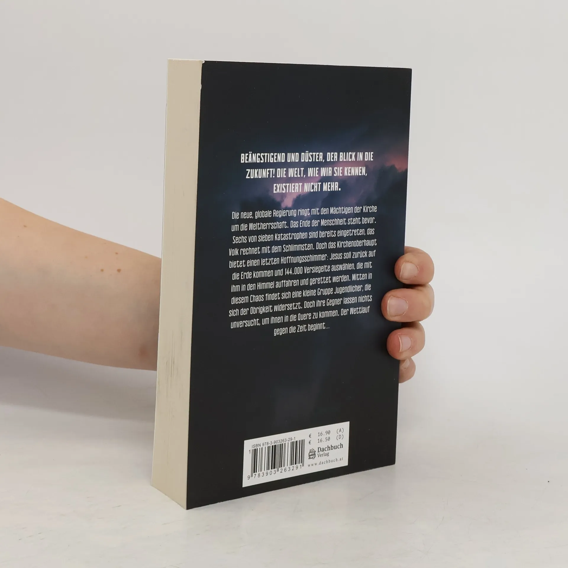 Beängstigend und düster, der Blick in die Zukunft! Die Welt, wie wir sie kennen, existiert nicht mehr. Die neue, globale Regierung ringt mit den Mächtigen der Kirche um die Weltherrschaft. Das Ende der Menschheit steht bevor. Sechs von sieben Katastrophen sind bereits eingetreten, das Volk rechnet mit dem Schlimmsten. Doch das Kirchenoberhaupt bietet einen letzten Hoffnungsschimmer: Jesus soll zurück auf die Erde kommen und 144.000 Versiegelte auswählen, die mit ihm in den Himmel auffahren und gerettet werden. Mitten in diesem Chaos findet sich eine kleine Gruppe Jugendlicher, die sich der Obrigkeit widersetzt. Doch ihre Gegner lassen nichts unversucht, um ihnen in die Quere zu kommen. Der Wettlauf gegen die Zeit beginnt…