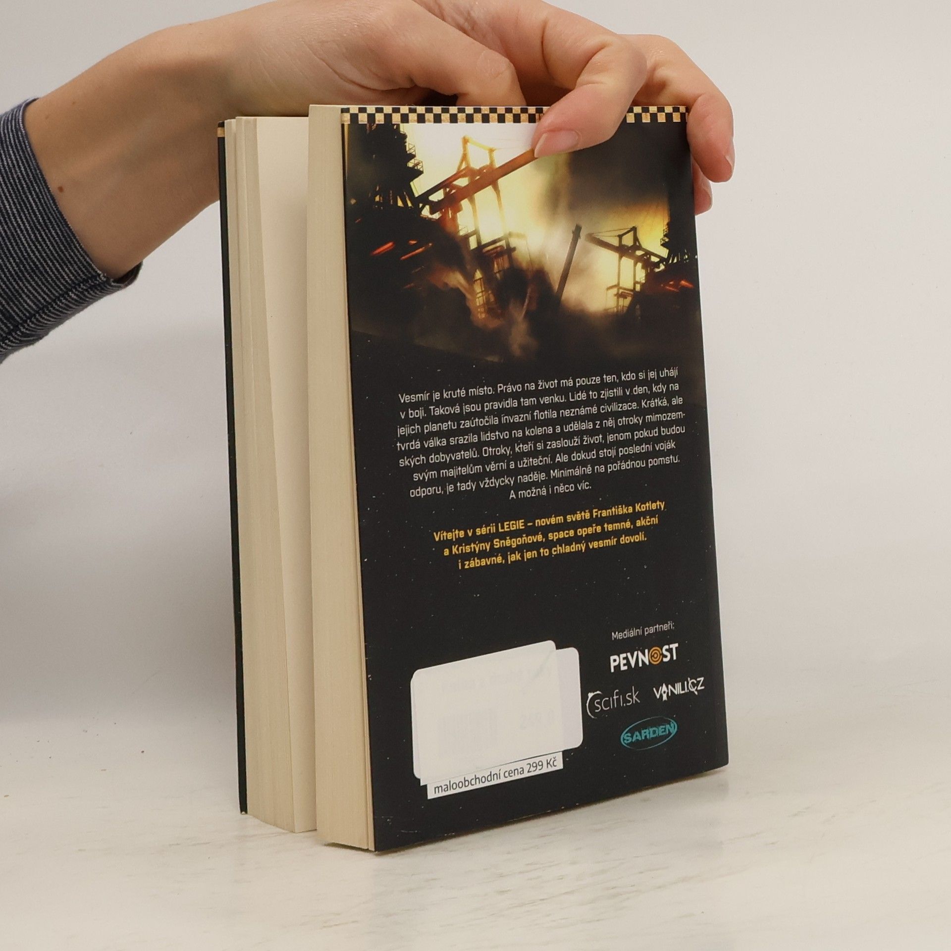 Vesmír je kruté místo. Právo na život má pouze ten, kdo si jej uhájí v boji. Taková jsou pravidla tam venku. Lidé to zjistili v den, kdy na jejich planetu zaútočila invazní flotila neznámé civilizace. Krátká, ale tvrdá válka srazila lidstvo na kolena a udělala z něj otroky mimozemských dobyvatelů. Otroky, kteří si zaslouží život, jenom pokud budou svým majitelům věrní a užiteční. Ale dokud stojí poslední voják odporu, je tady vždycky naděje. Minimálně na pořádnou pomstu. A možná i něco víc. Vítejte v sérii Legie – novém světě Františka Kotlety a Kristýny Sněgoňové, space opeře temné, akční i zábavné, jak jen to chladný vesmír dovolí.