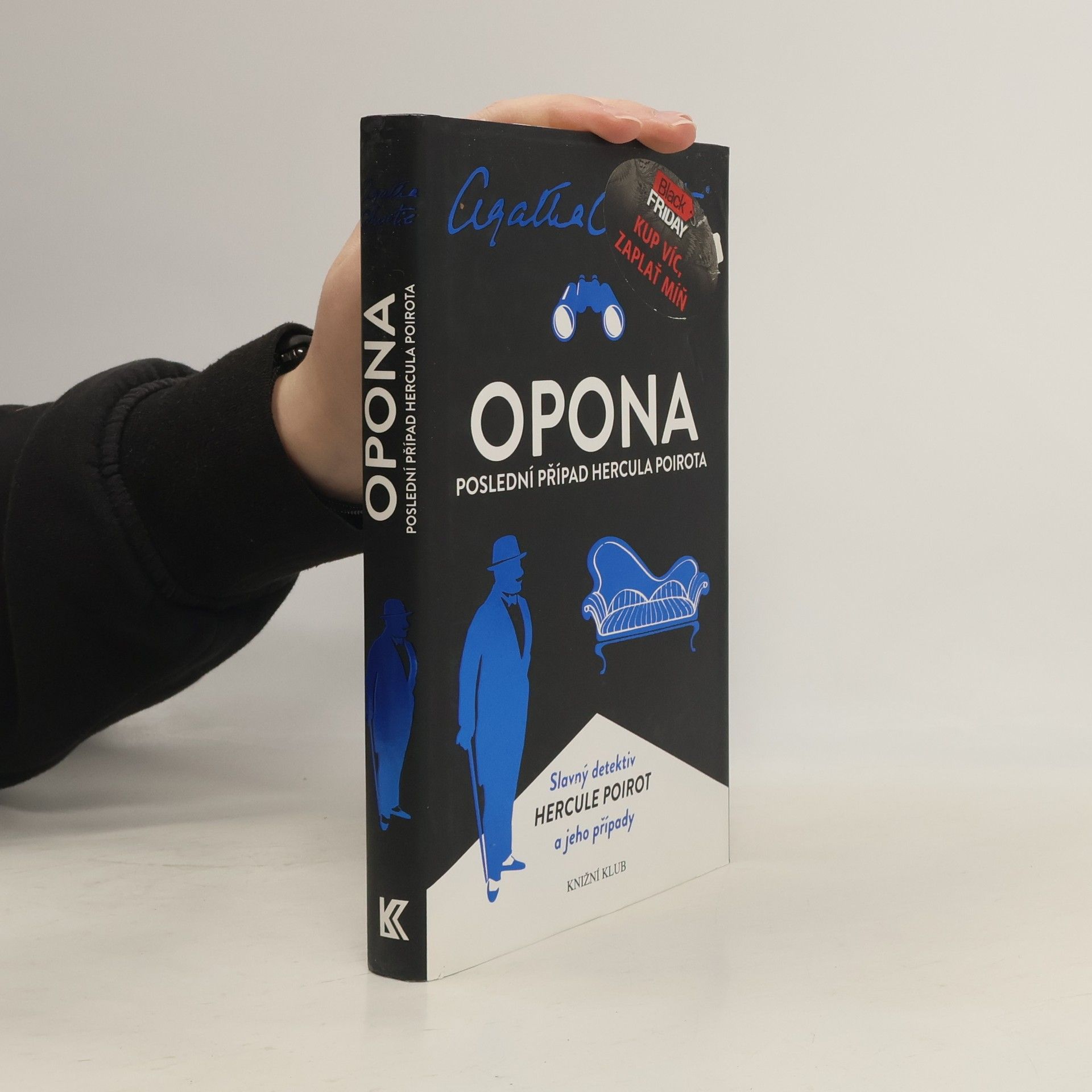 Kapitán Hastings, Hercule Poirot a zámek Styles – tam ti dva poprvé vyrazili na lov vraha tehdejší majitelky. A tam se také po letech setkávají, aby společně odhalili dalšího mimořádně nebezpečného zločince. Styles už dávno patří někomu jinému, stal se z něj penzion manželů Luttrellových, obývaný různorodou směsicí hostů. Je mezi nimi i Hastingsova dcera Judith, oddaná pomocnice doktora Franklina, zkoumajícího tropické nemoci. Je zde také místní donchuán Allerton, nadšený amatérský ornitolog Norton či tak trochu záhadná slečna Coleová. Na první pohled mírumilovná společnost – Poirot však tvrdí, že se mezi nimi pohybuje vrah. A že udeří. Ale jak mu v tom zabránit? Slavný detektiv, sužovaný stářím a chorobou, se za pomoci svých malých šedých buněk a svého věrného přítele naposledy pouští do souboje se zlem v lidské podobě – výhru si však tentokrát vybere nejen spravedlnost (byť ve zcela nečekané podobě), ale i smrt... Ač napsaná už ve 40. letech minulého století, vyšla Opona coby poslední detektivka s Poirotem až v roce 1975. Rok poté, co nechala Agatha Christie zmizet ze světa zločinu svého nejslavnějšího hrdinu, opustila i ona svět pozemský – a oba v nich zanechali jedinečnou a nesmazatelnou stopu.