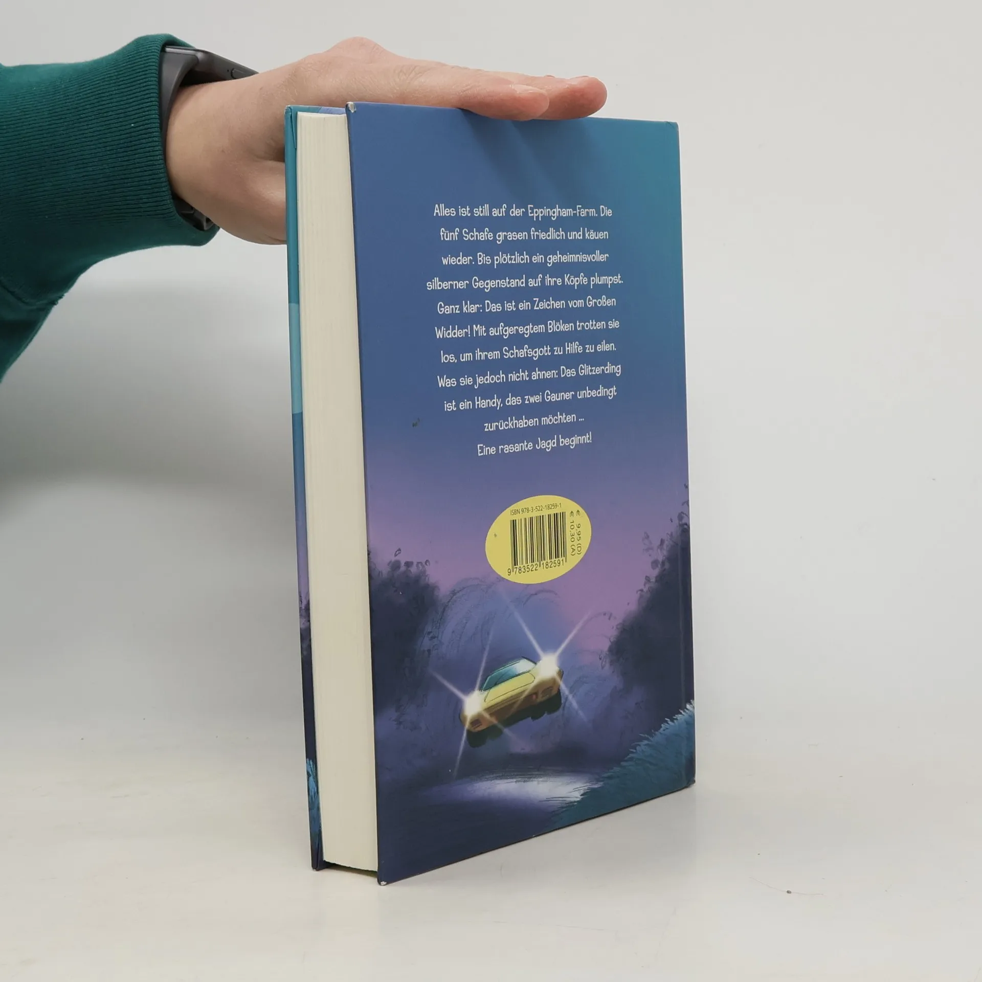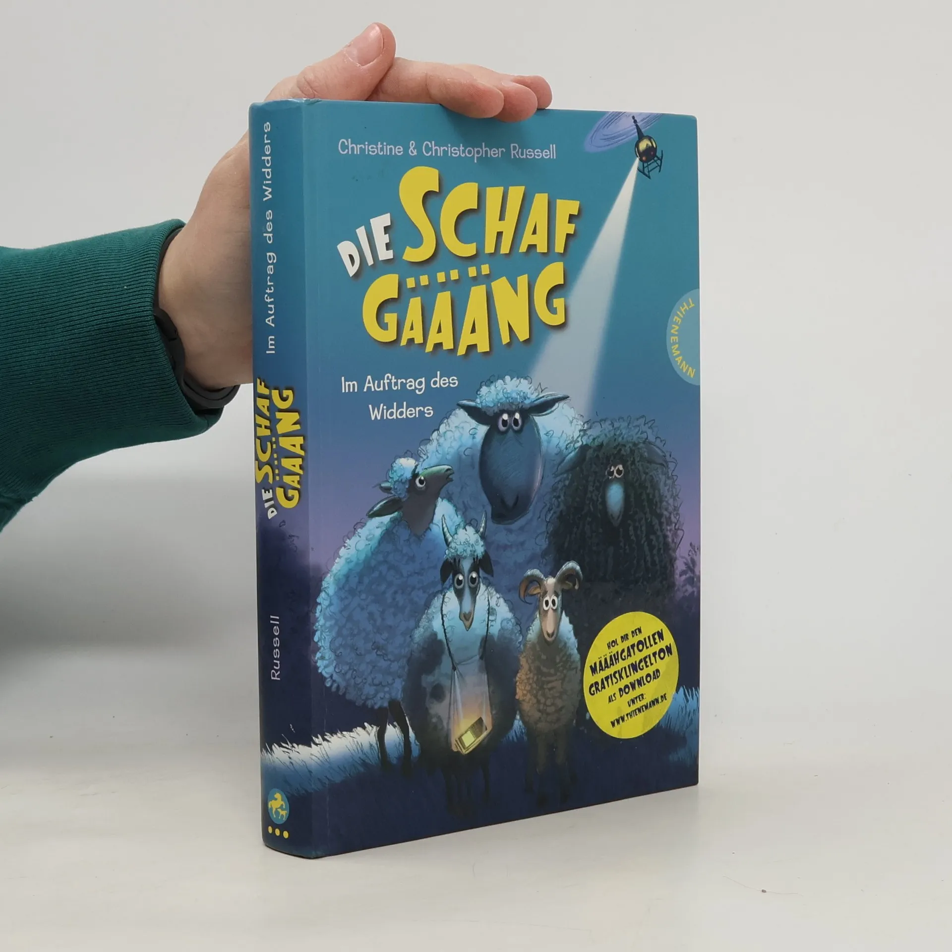 Alles ist still auf der Eppingham-Farm. Die fünf Schafe grasen friedlich und käuen wieder. Bis plötzlich ein geheimnisvoller silberner Gegenstand auf ihre Köpfe plumpst. Ganz klar: Das ist ein Zeichen vom Großen Widder! Mit aufgeregtem Blöken trotten sie los, um ihrem Schafsgott zu Hilfe zu eilen. Was sie jedoch nicht ahnen: Das Glitzerding ist ein Handy, das zwei Gauner unbedingt zurückhaben möchten. Eine rasante Jagd beginnt! Ein Muss für alle Schaf-Fans ab 10 Jahren